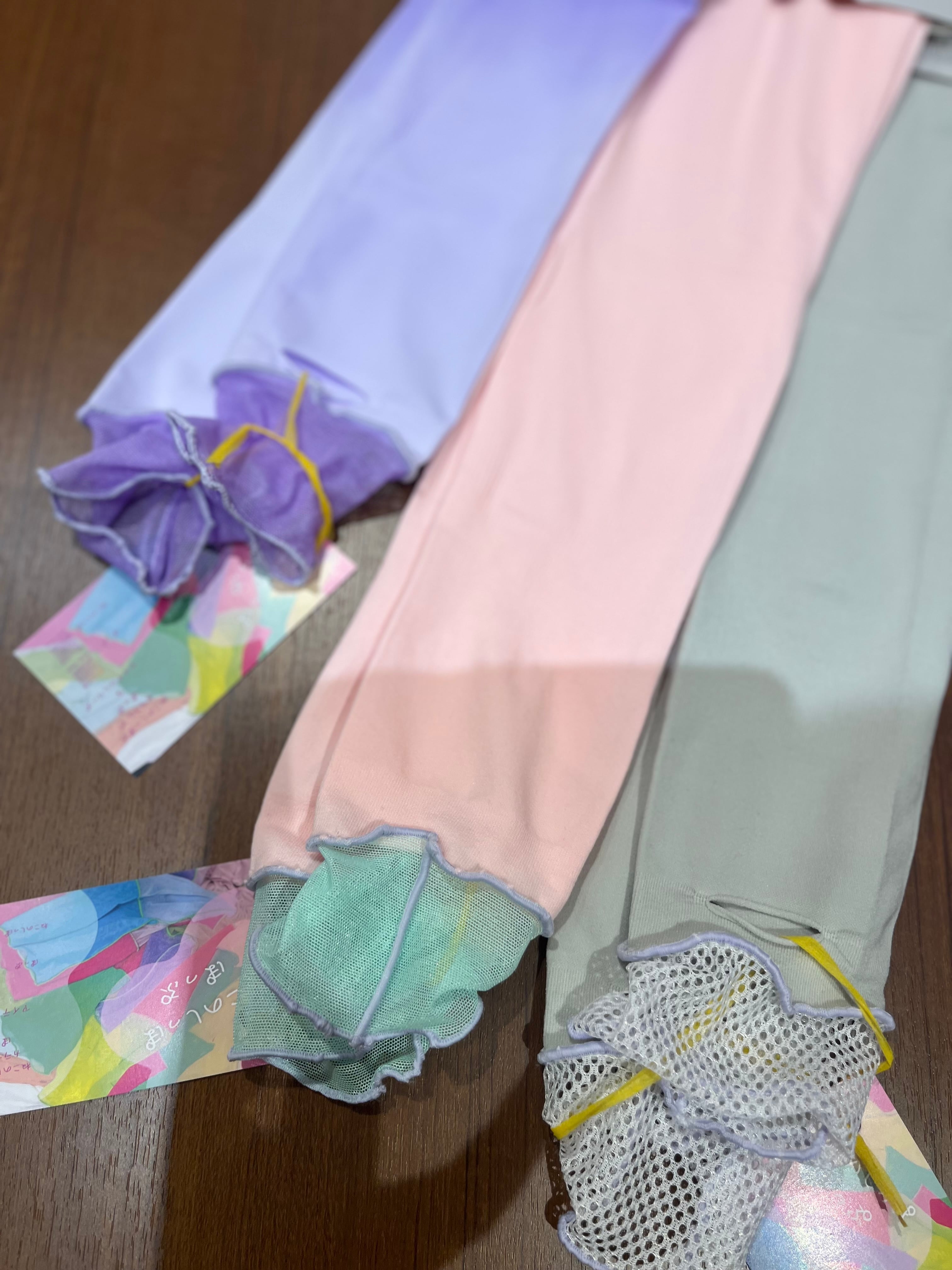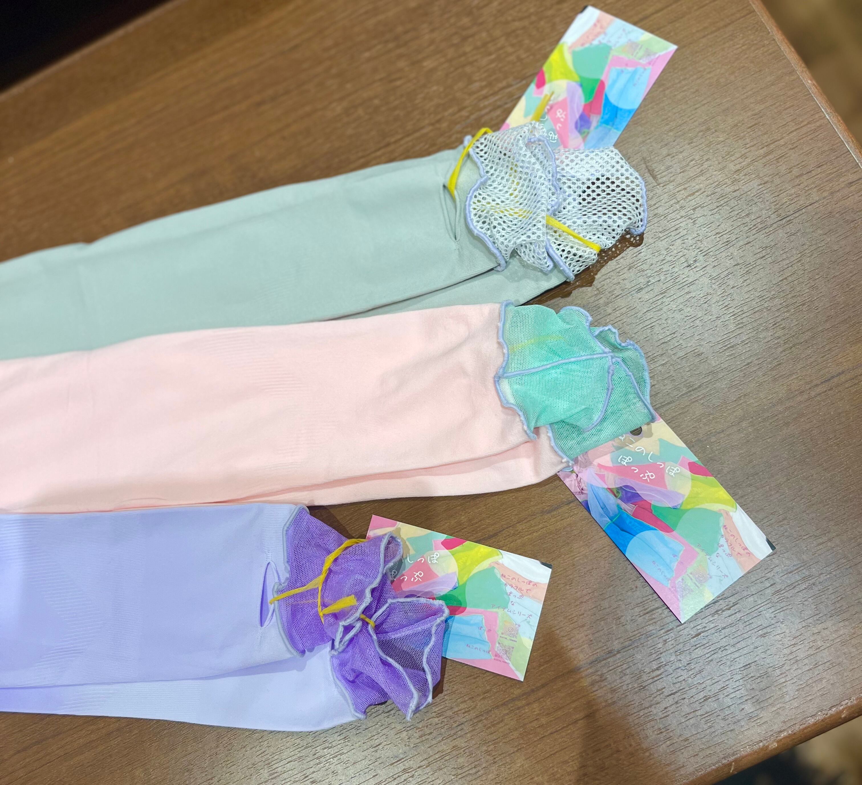 ご来店ありがとうございます!オンリーワンの「アームカバー 接触冷感」が新たに登場しました。かわいらしいチュール素材を使用しており、涼感を感じられるデザインが特徴です。長めの仕様で、腕全体を優しく包み込んでくれます!