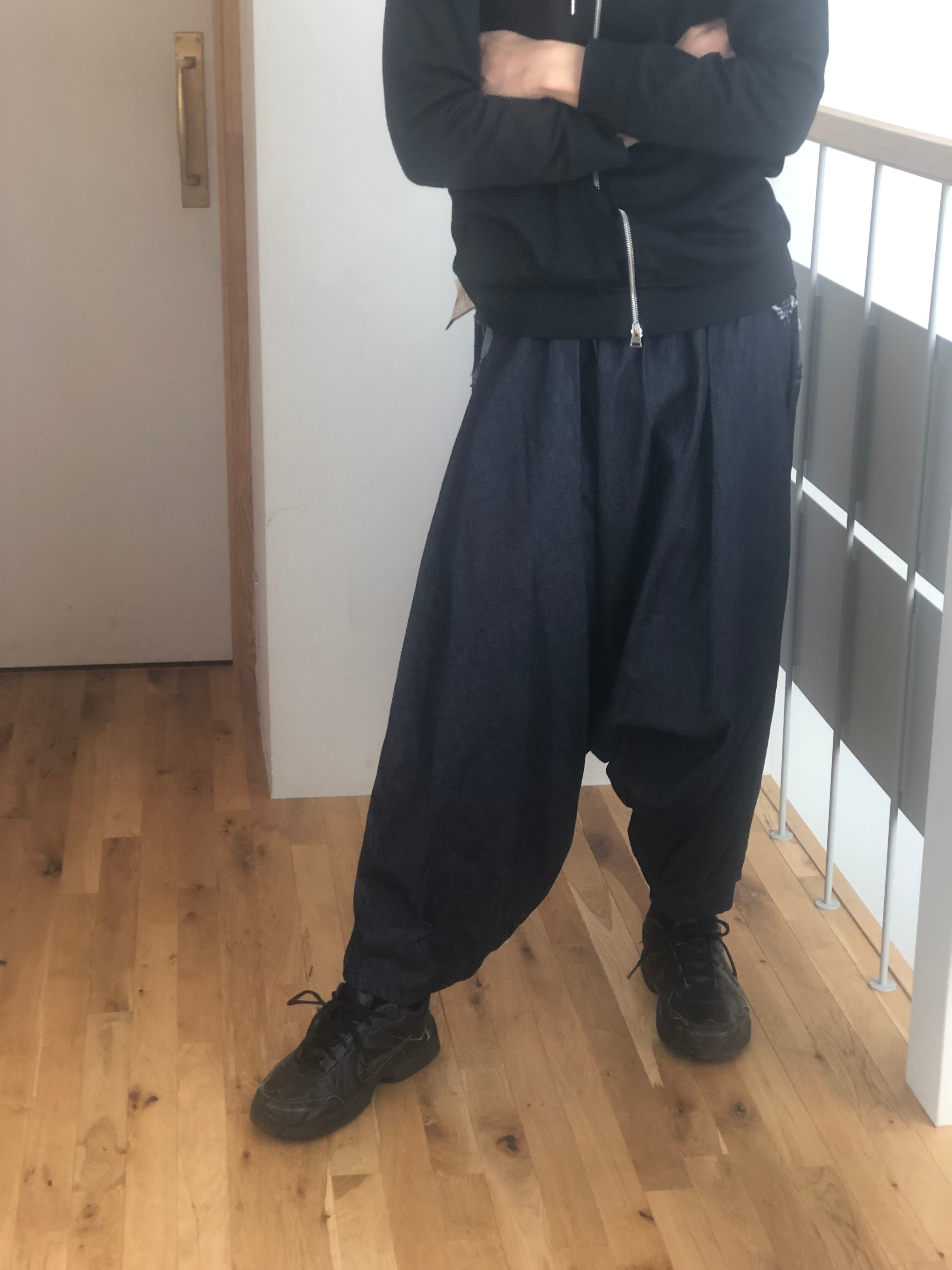 とってもゆったりとしたサルエルパンツ、男女兼用フリーサイズです。