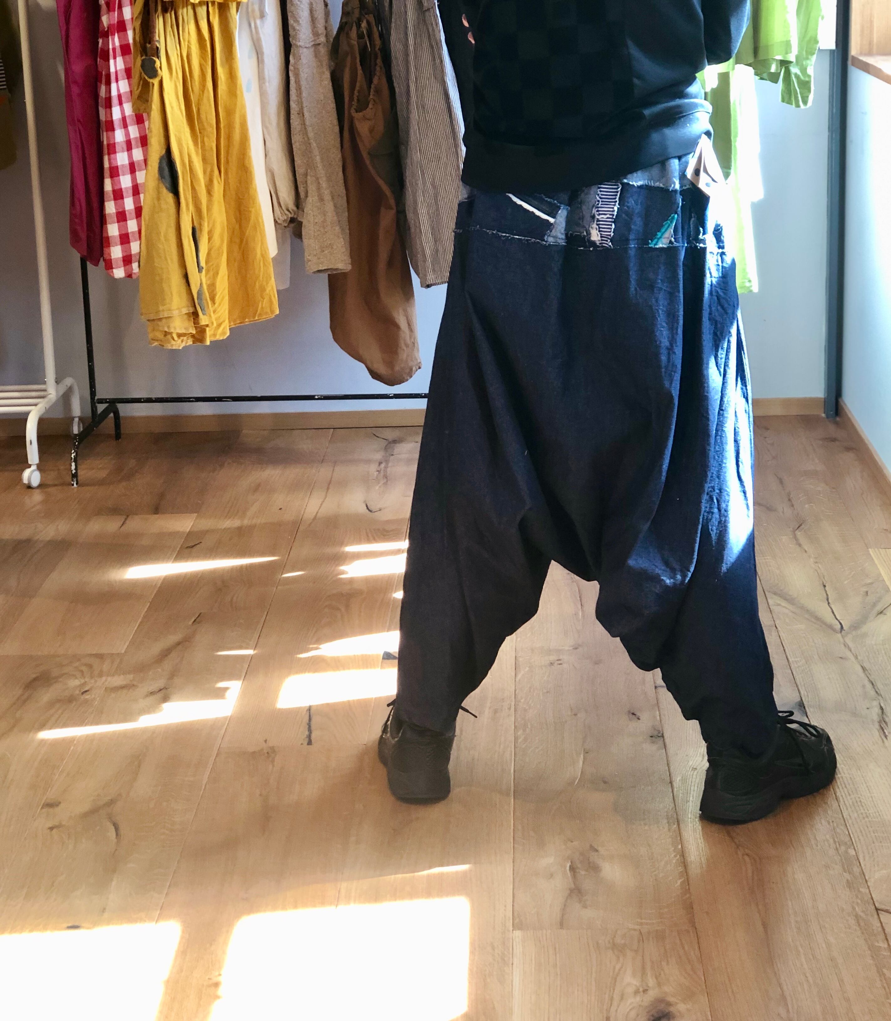 とってもゆったりとしたサルエルパンツ、男女兼用フリーサイズです。