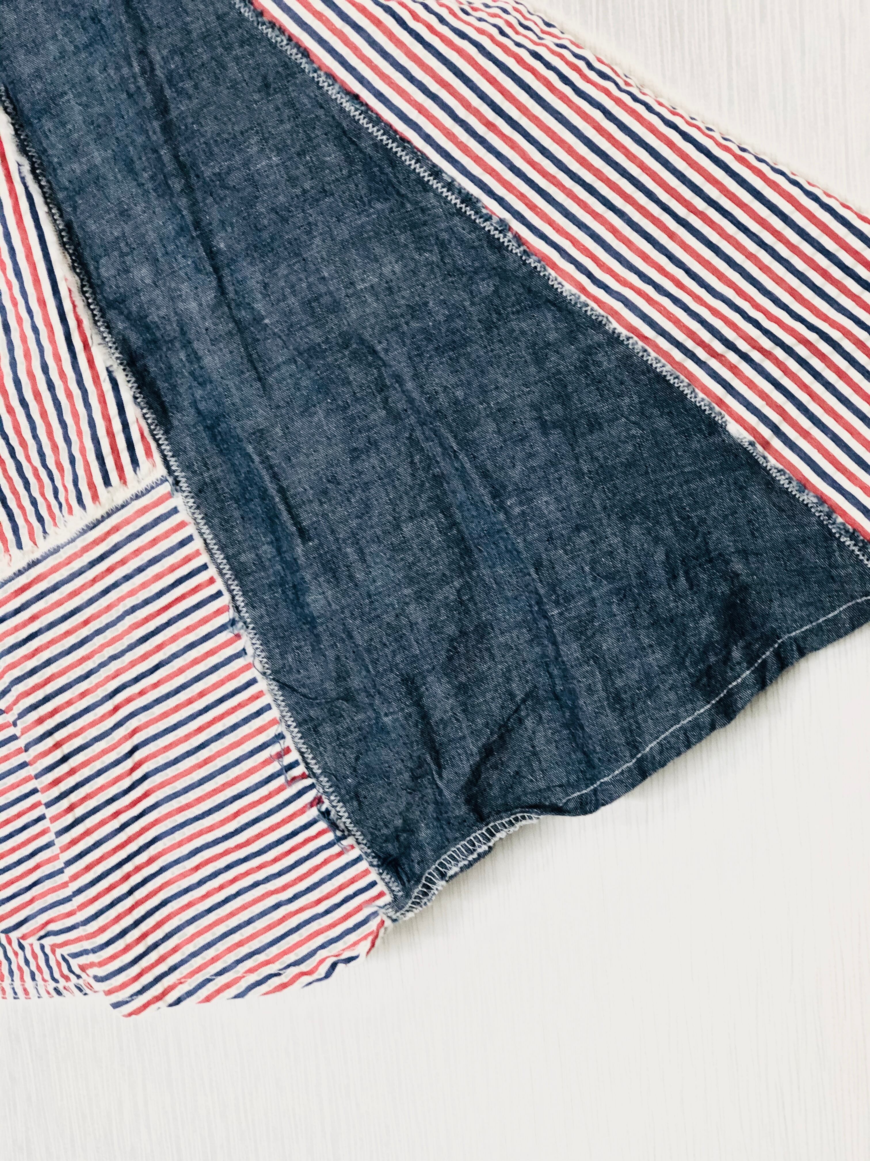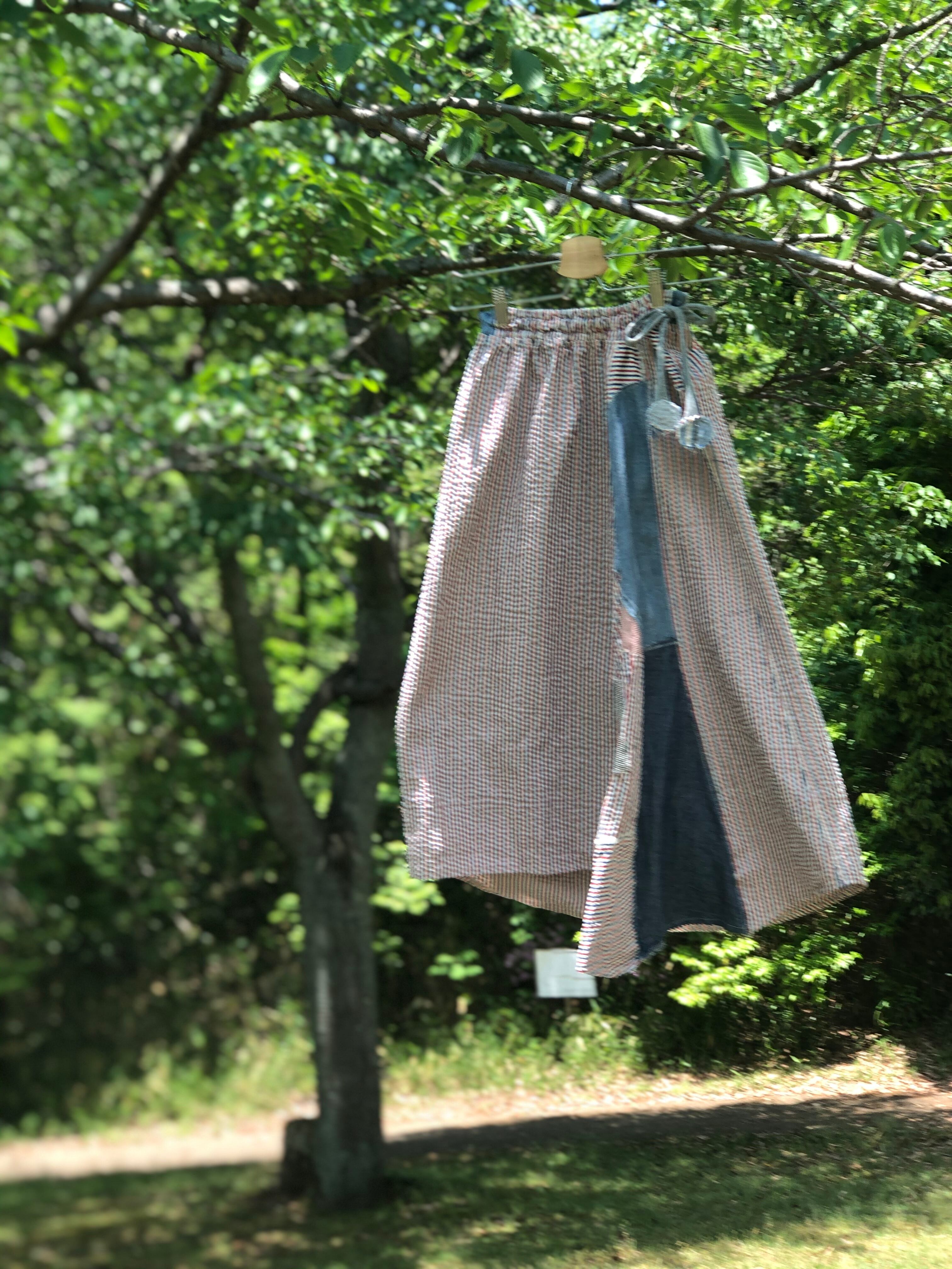 ポイント部は端を少し残してジグザグミシンで仕上げてありますので、多少ほつれ等ある場合があります。(気になる部分はスカート部を傷付けないように、出た糸をカットしていただいてもかまいません。)洗濯のたびに、あなた流に、変化させて、あなただけのお気に入りを深めていっていただきたい、、