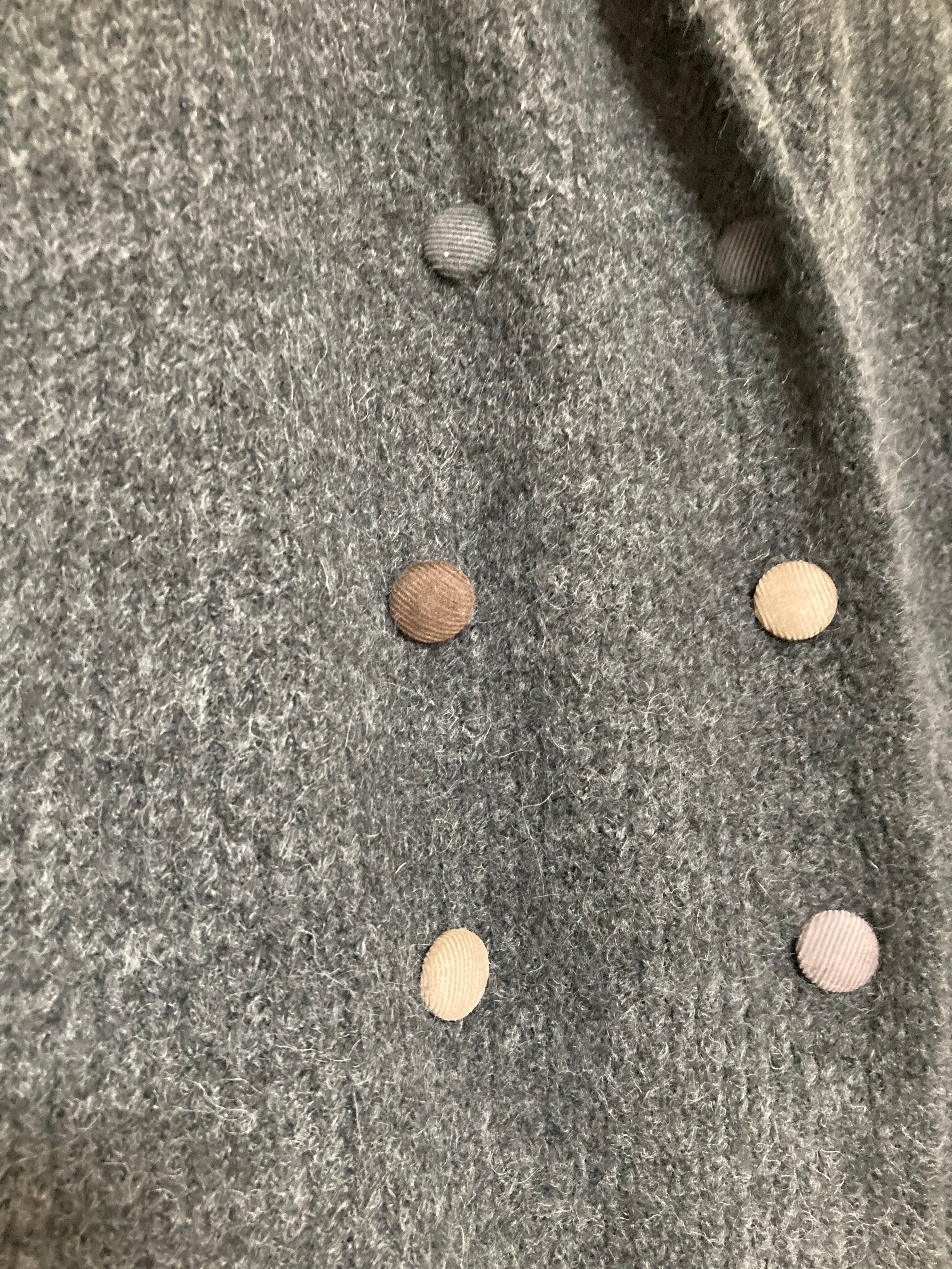 ジャケットとしても使えるニットはクルミボタンをカラフルに仕上げました。