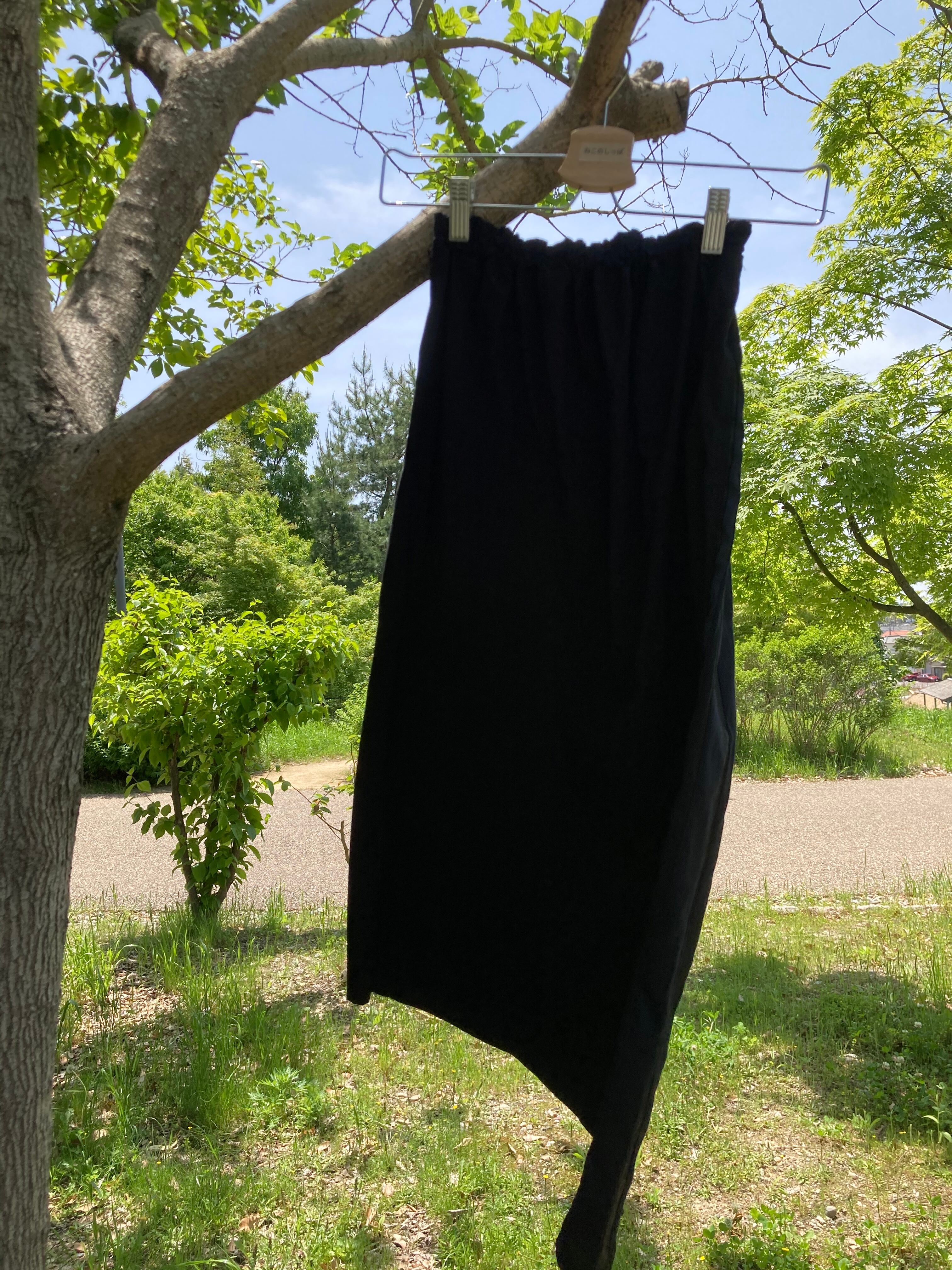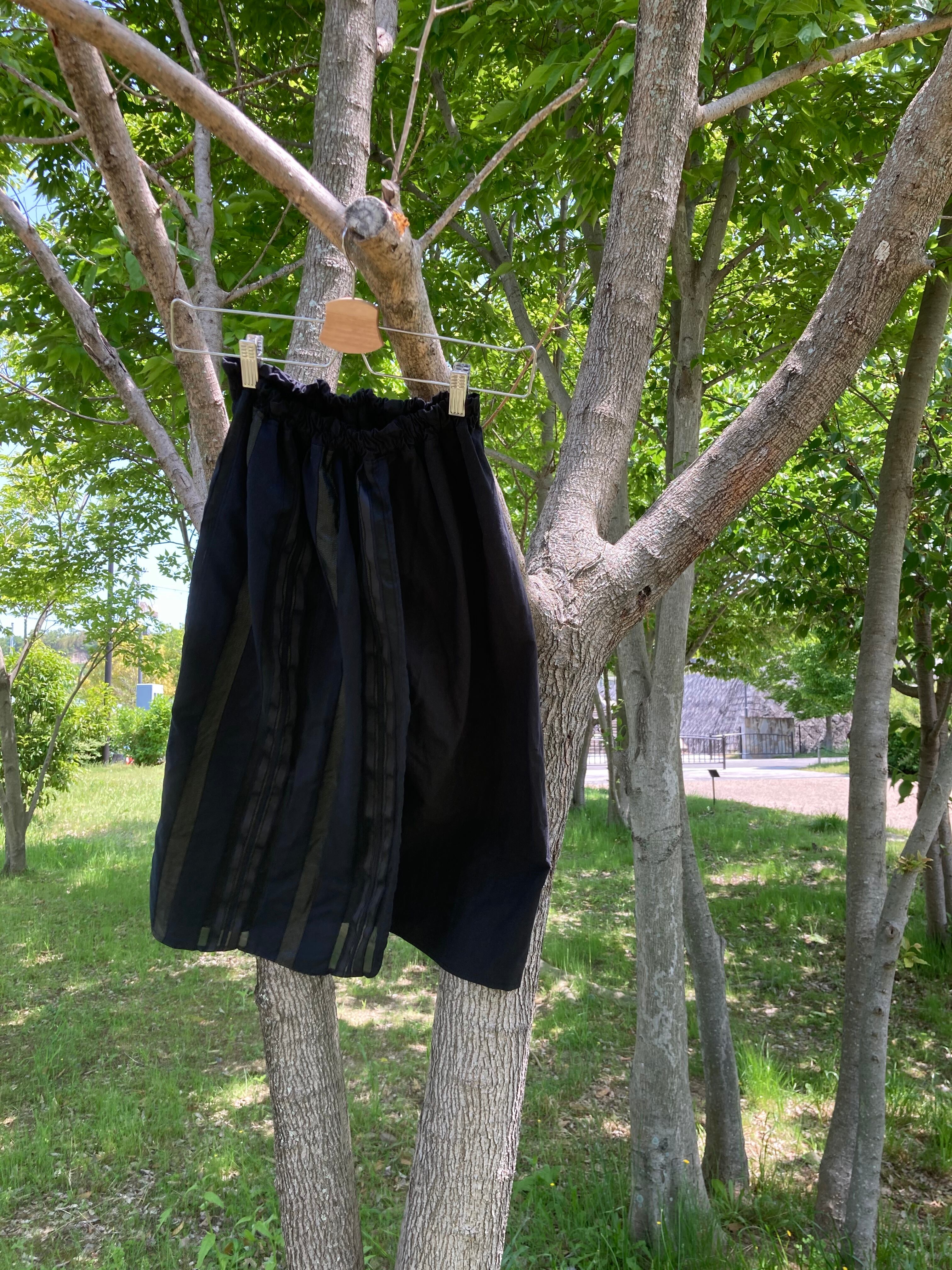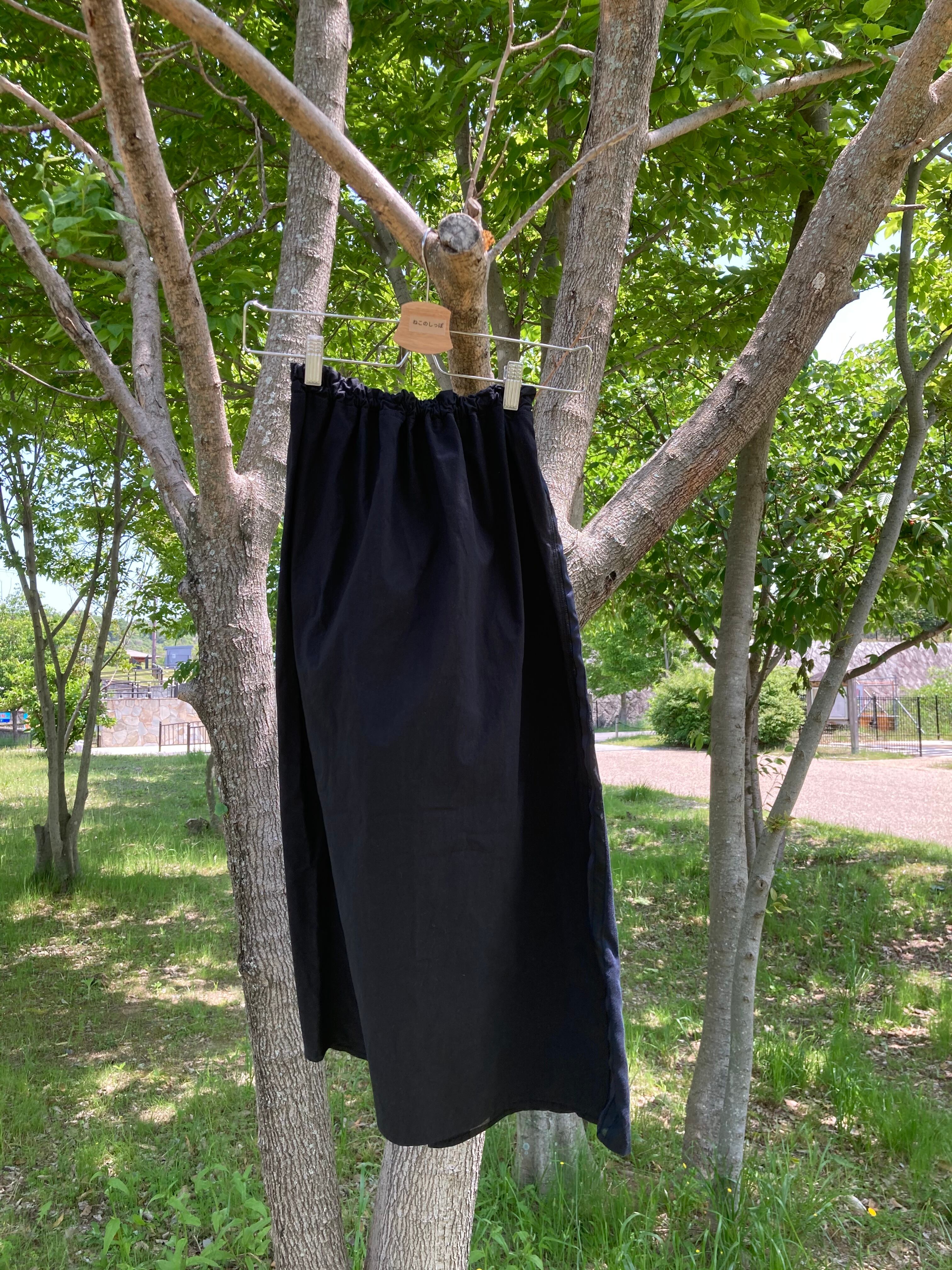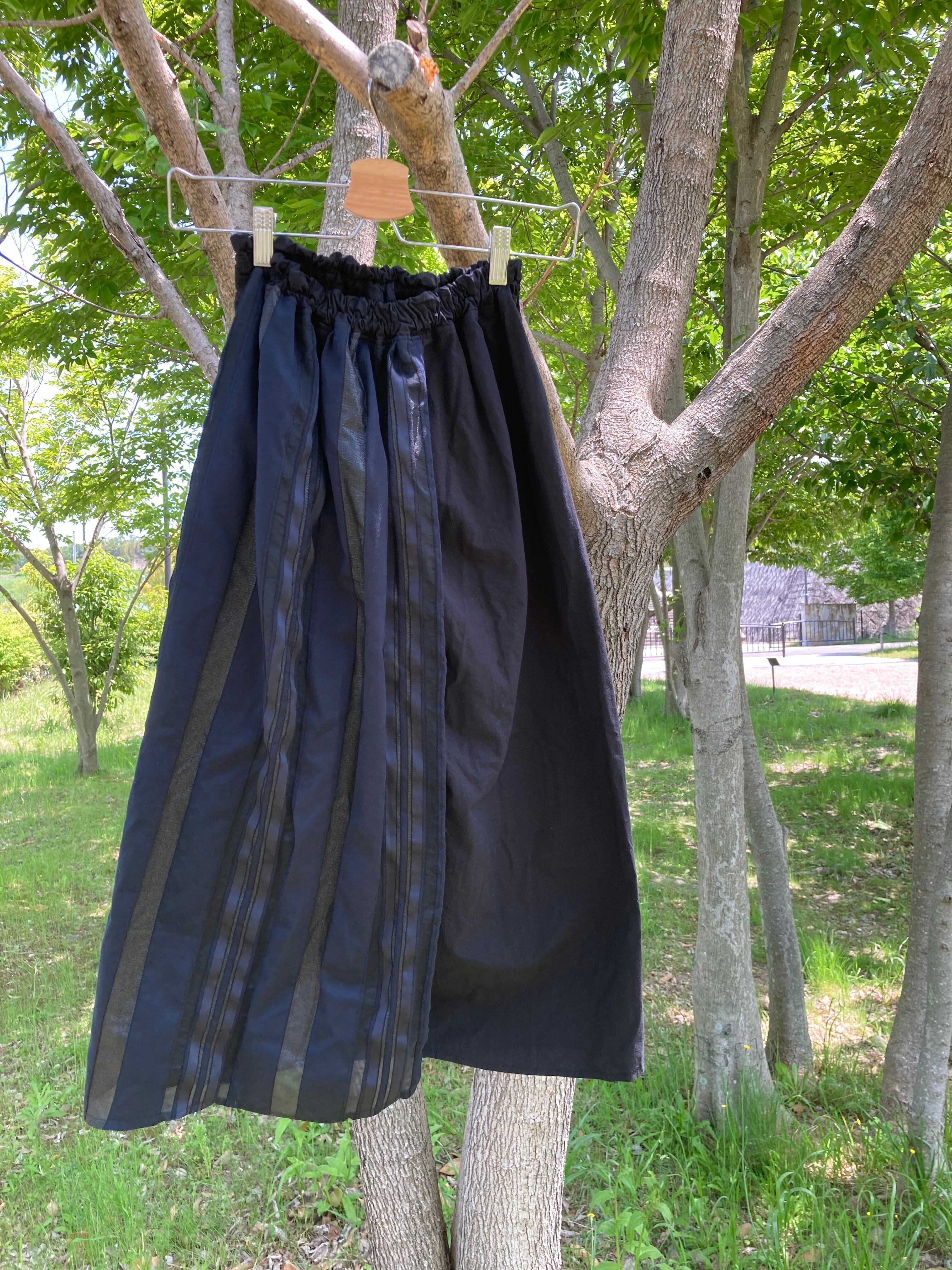 こちらは、播州(兵庫県)産の透け感のない少し張りのある、コットン生地と尾州産(岐阜)の透け感のある生地を合わせて仕上げたスカートです。