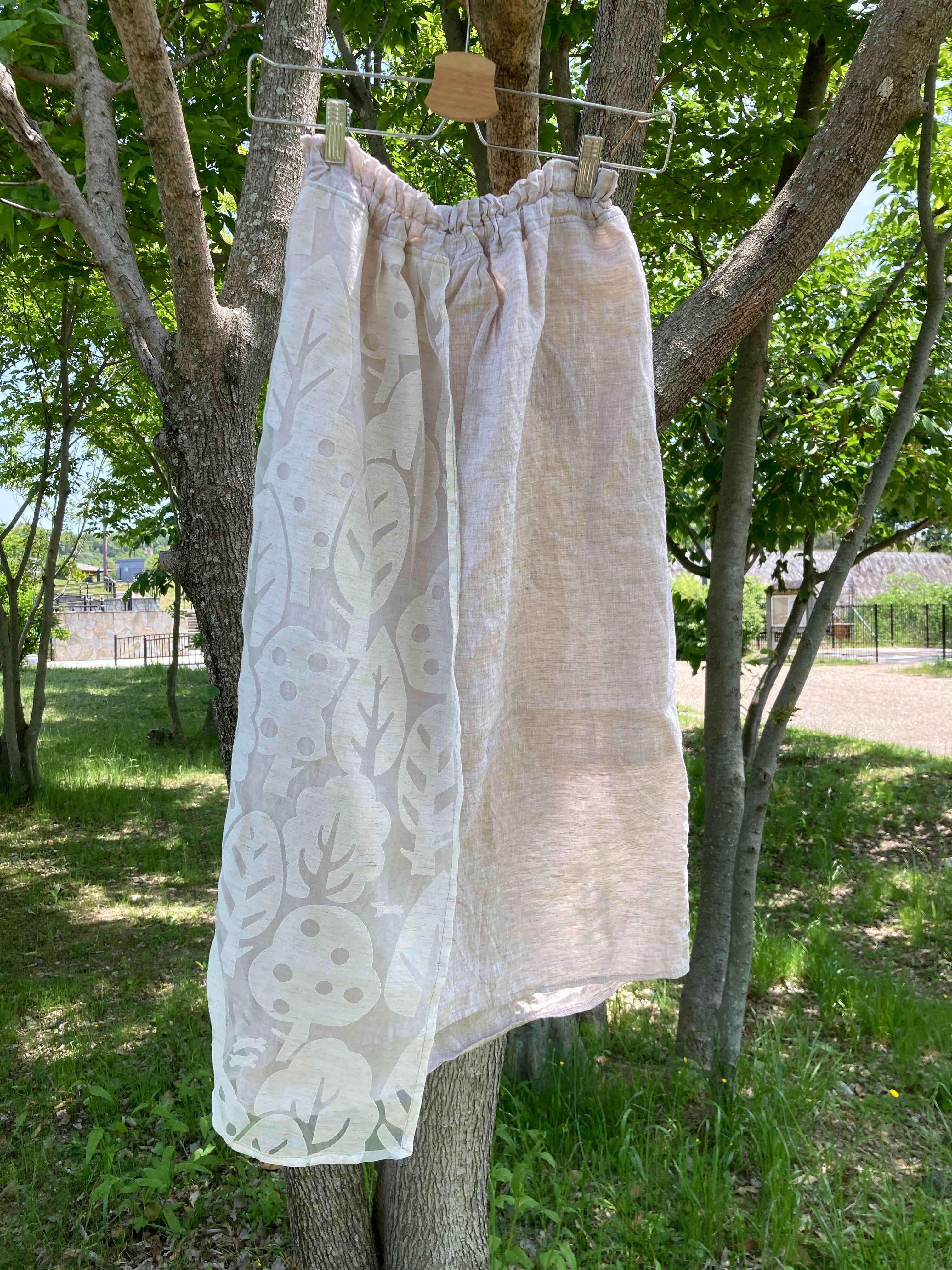 ポイントを後ろにして、ぱっと見無地のシンプルなリネンスカートとして、