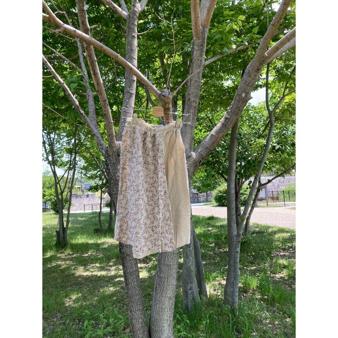 コットンリネン生地とリネンに刺繍した生地を合わせて仕上げました