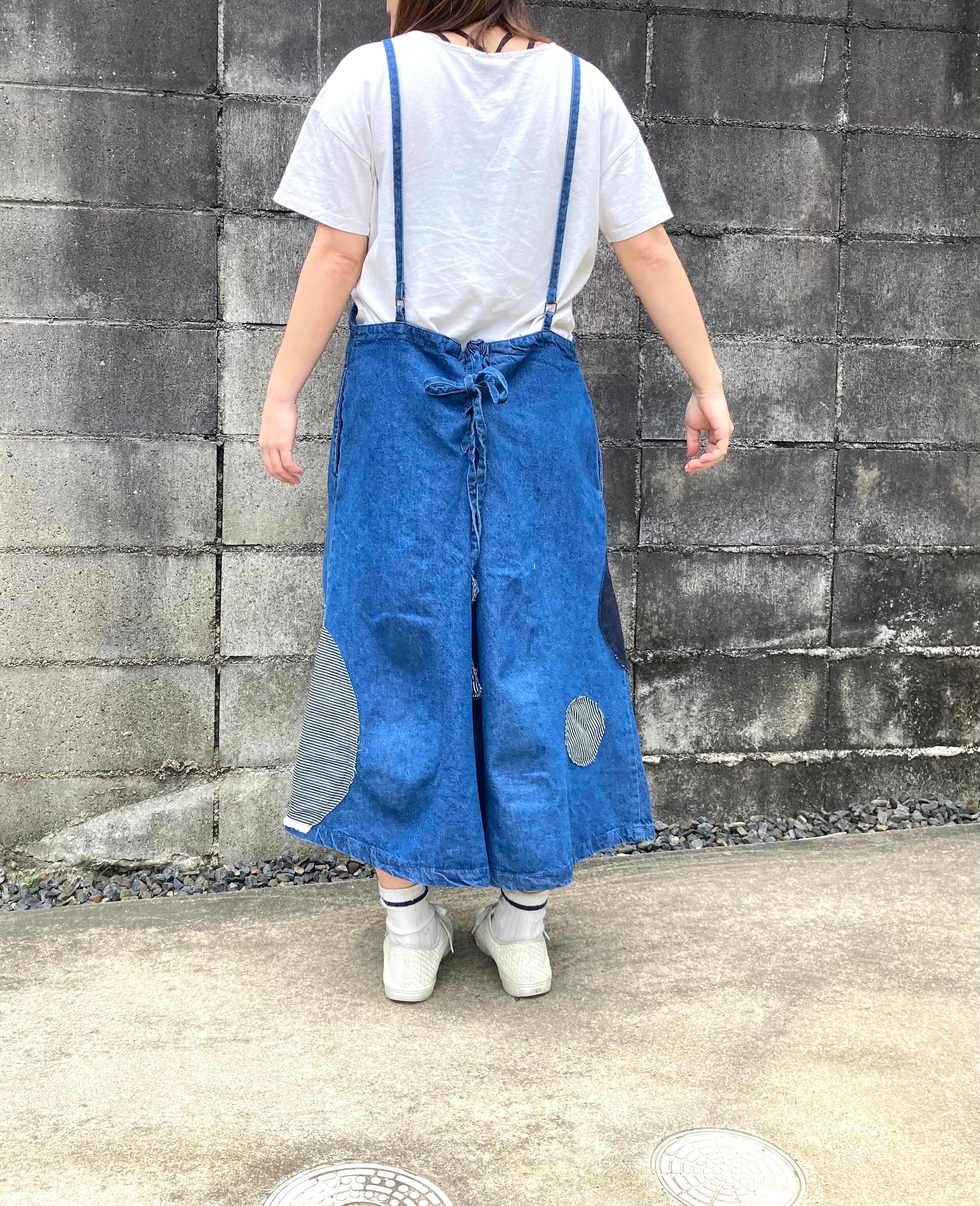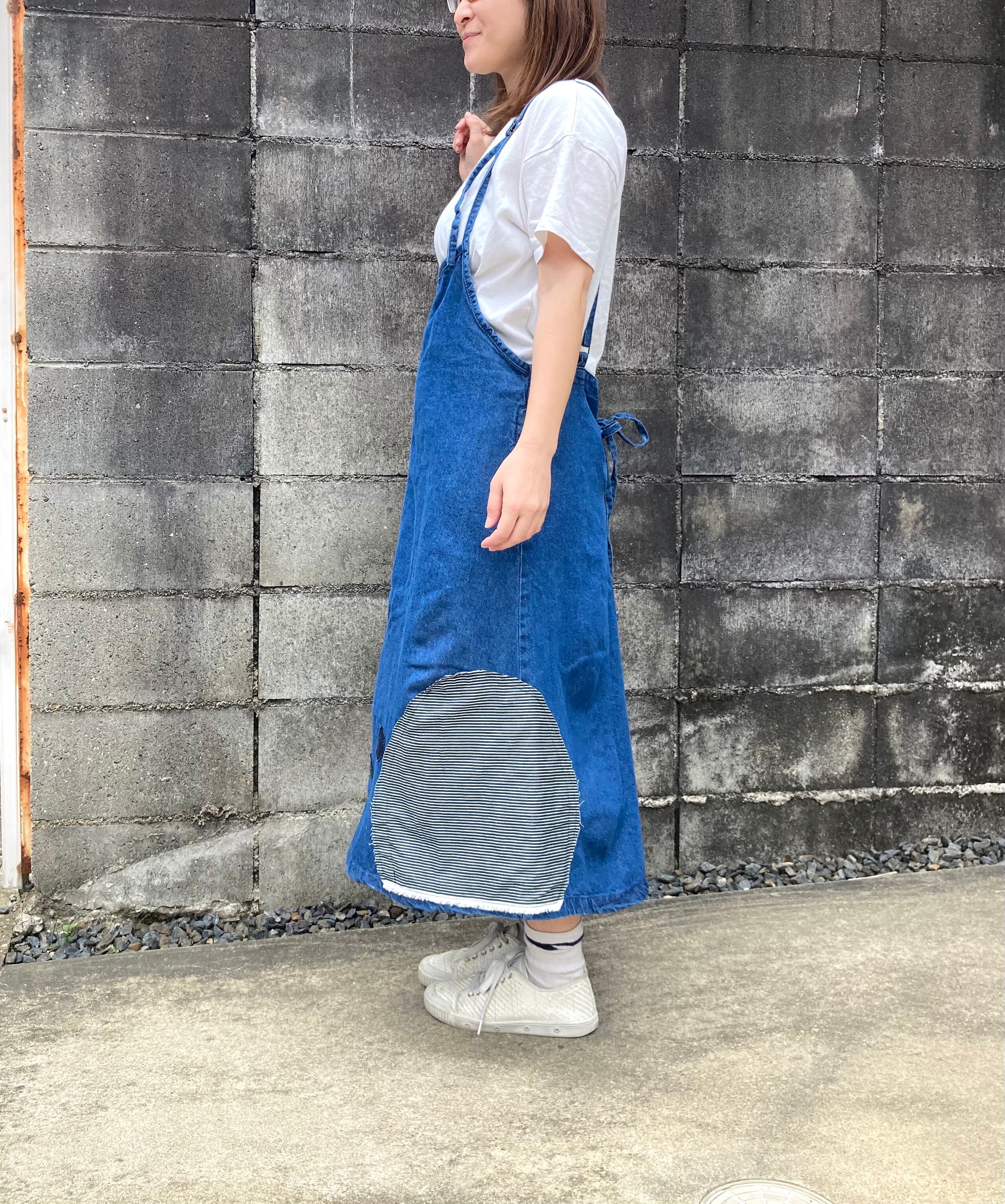 [Mサイズ]ウエスト:43cm、前丈/後丈:93/77cm、肩紐(前/後):35/50cm、裾幅:80cm
