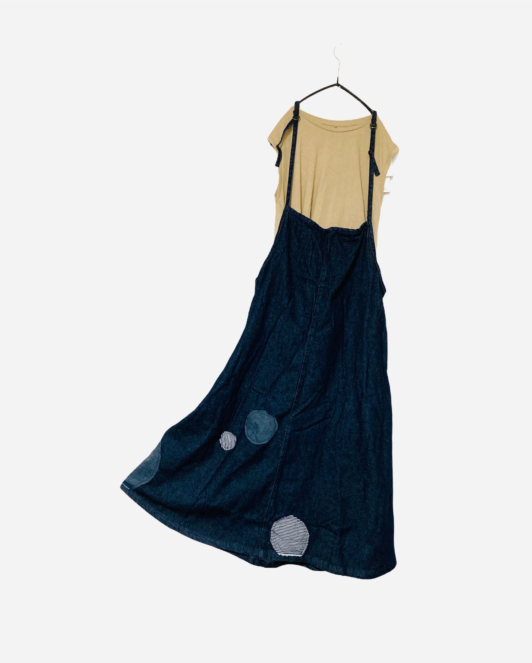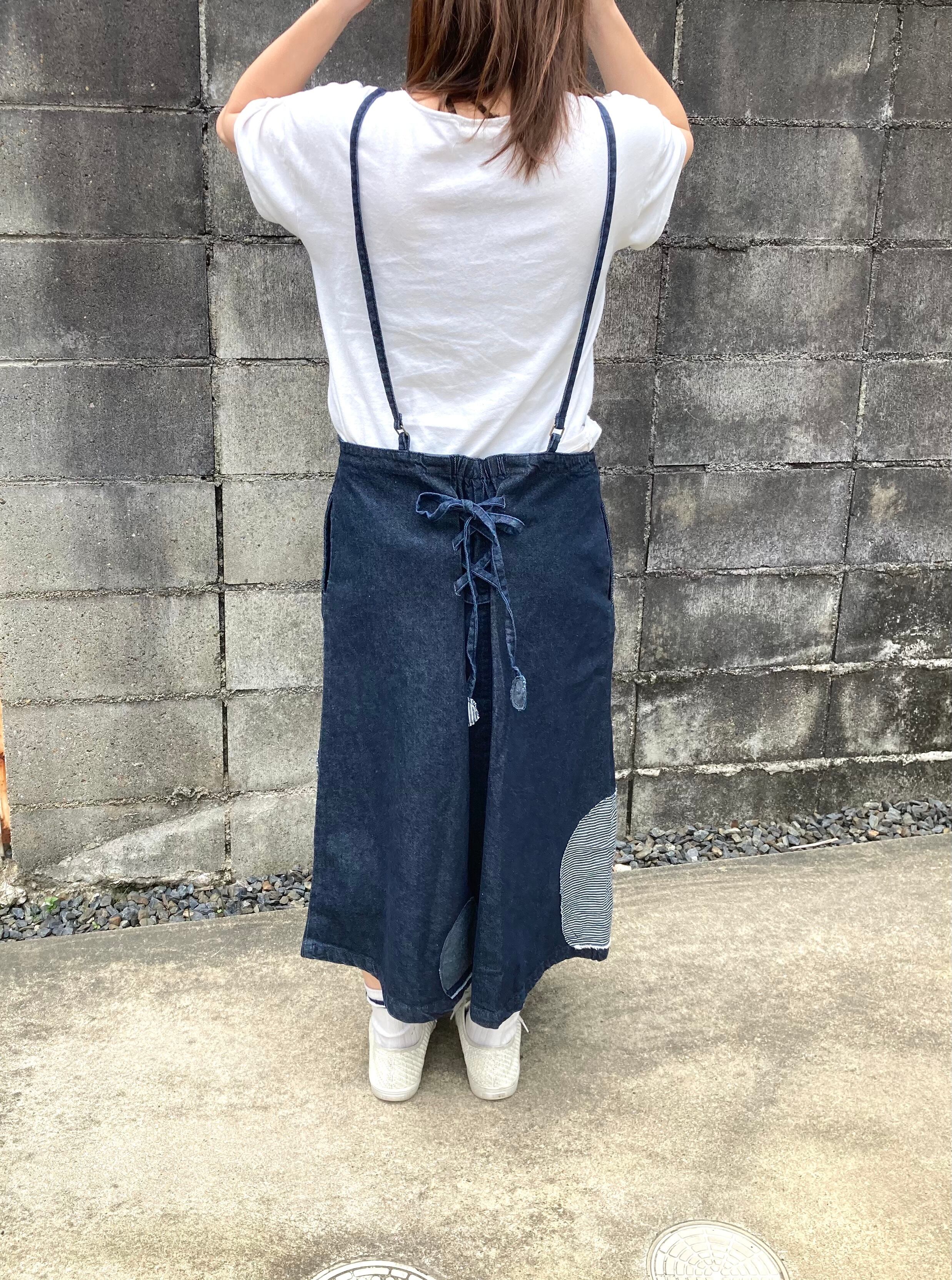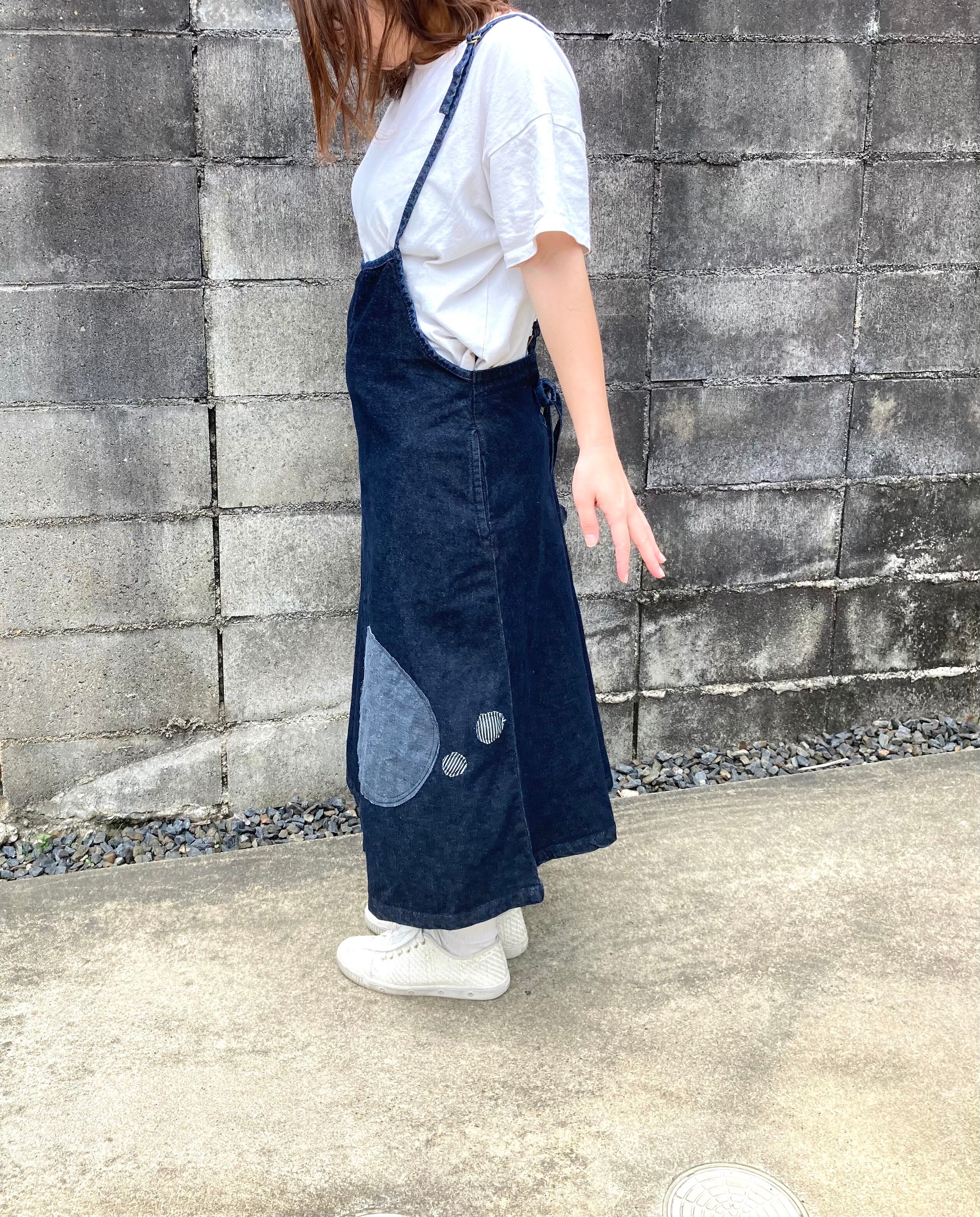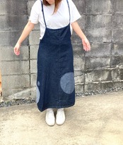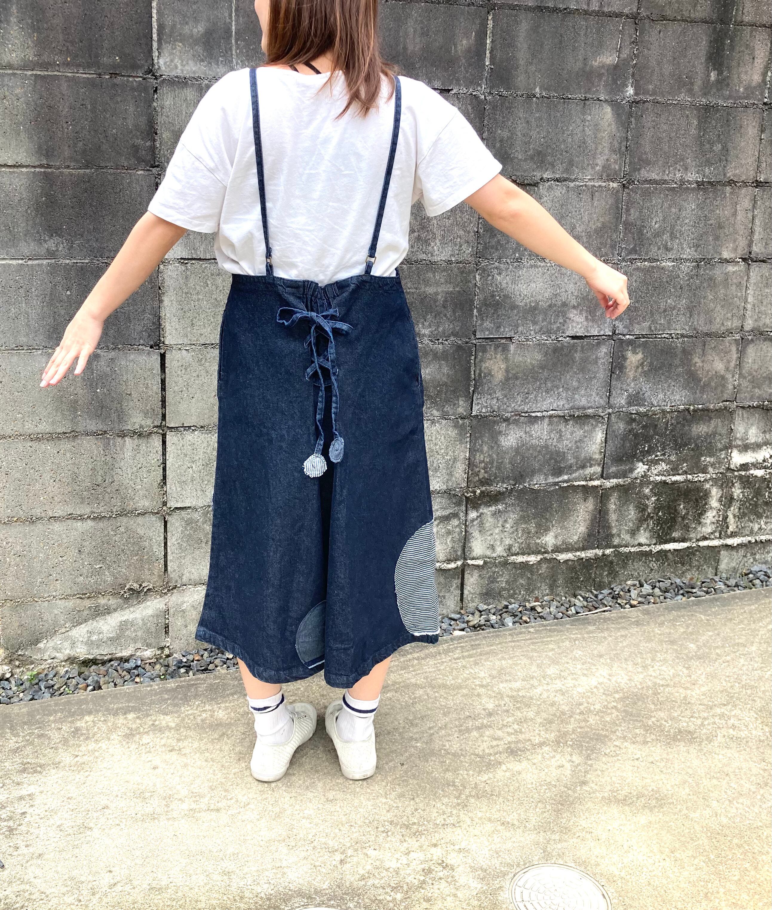 [Mサイズ]ウエスト:43cm、前丈/後丈:93/77cm、肩紐(前/後):35/50cm、裾幅:80cm