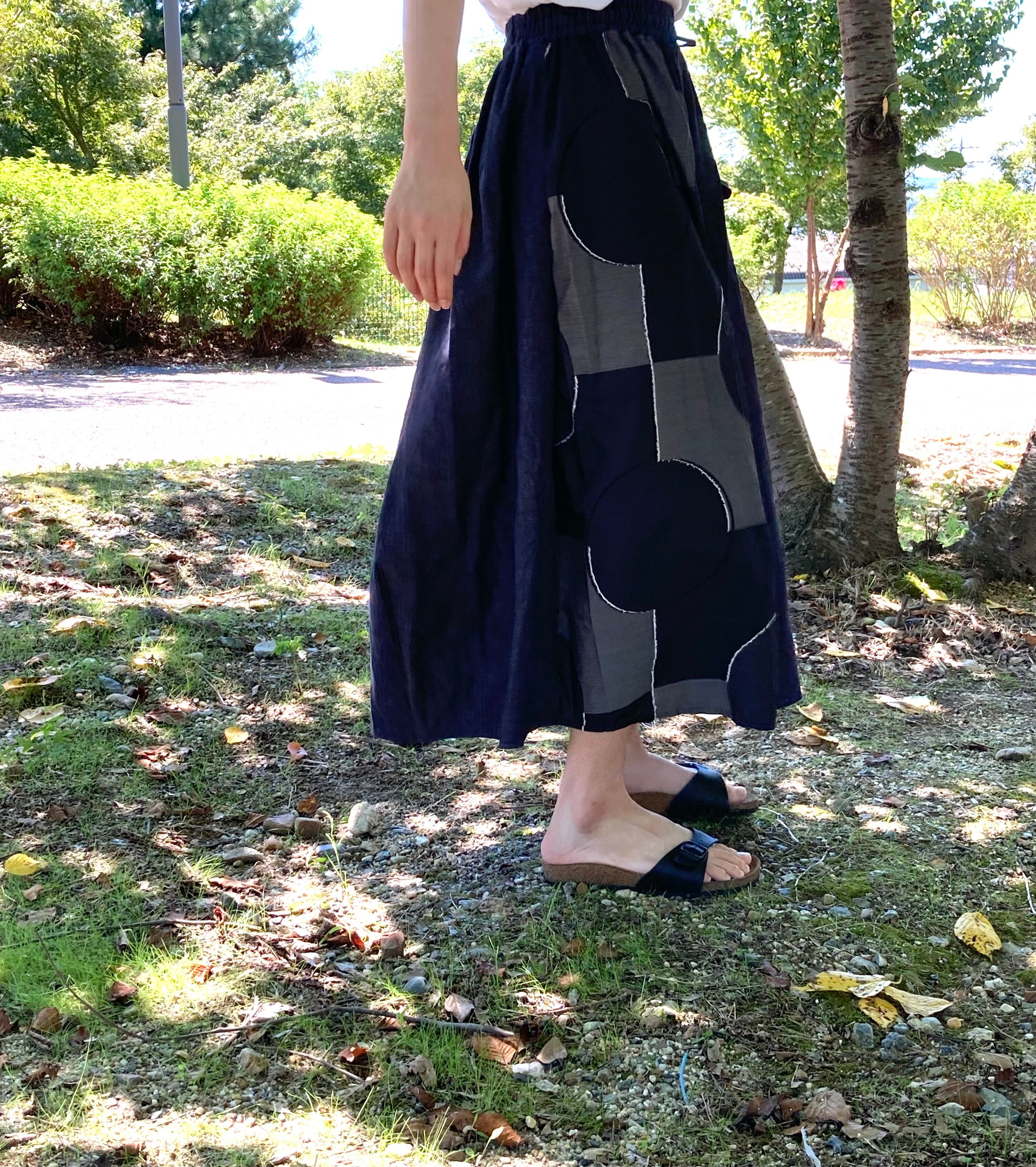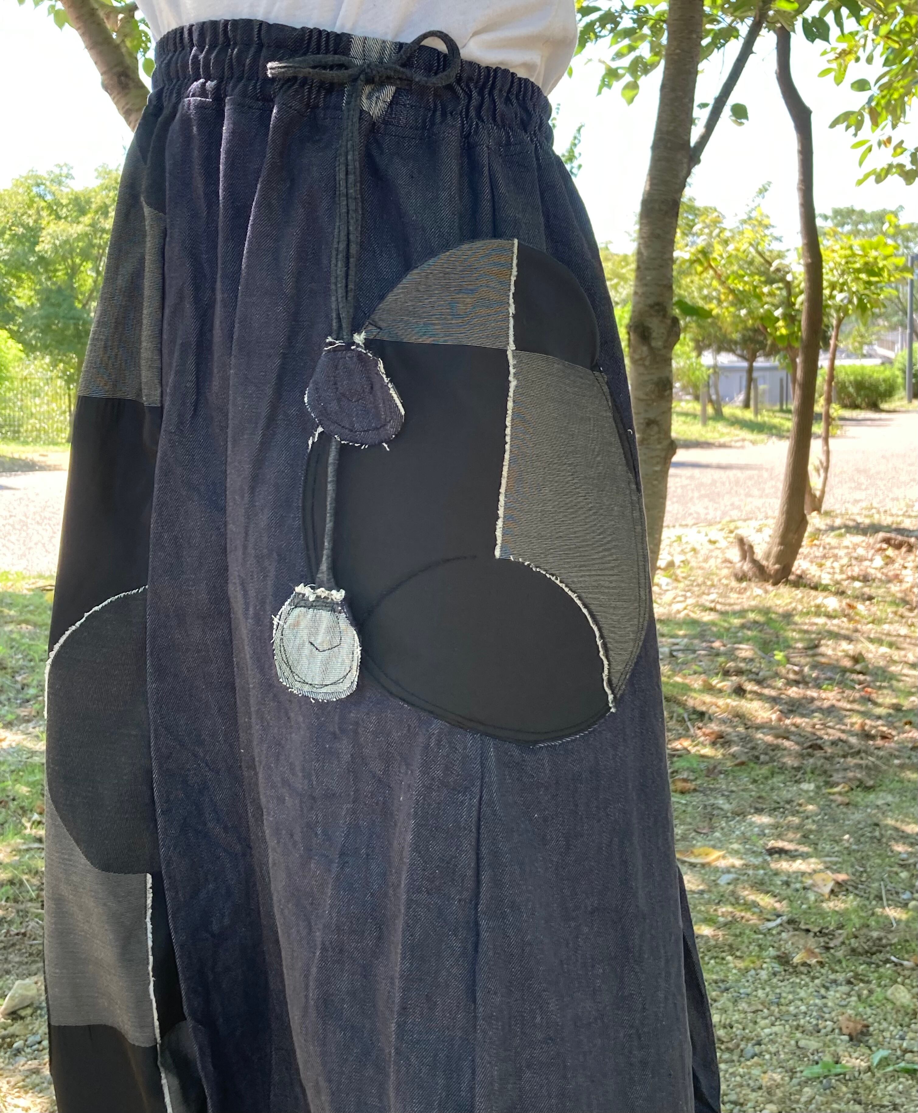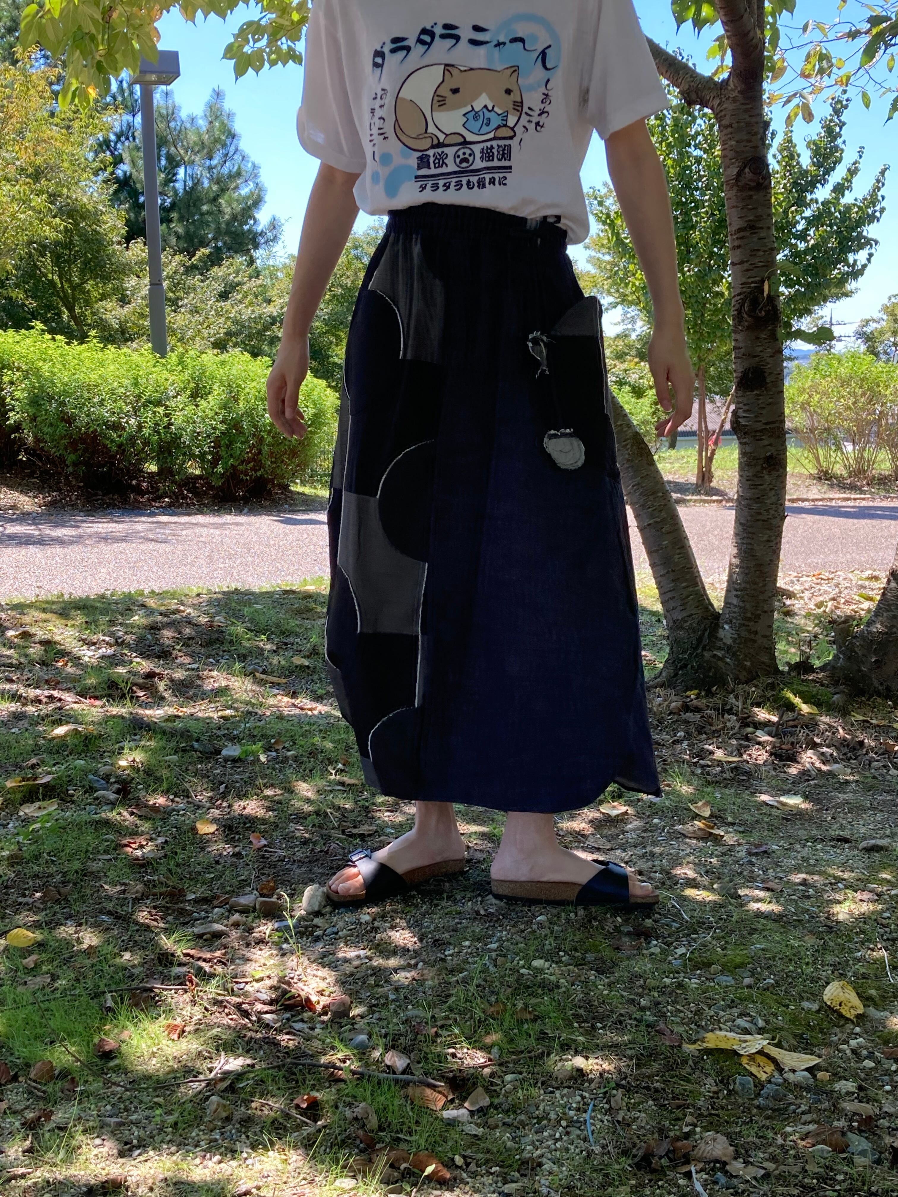 岡山県産の児島デニムと岐阜県産尾州織物で仕上げたスカートになります。
