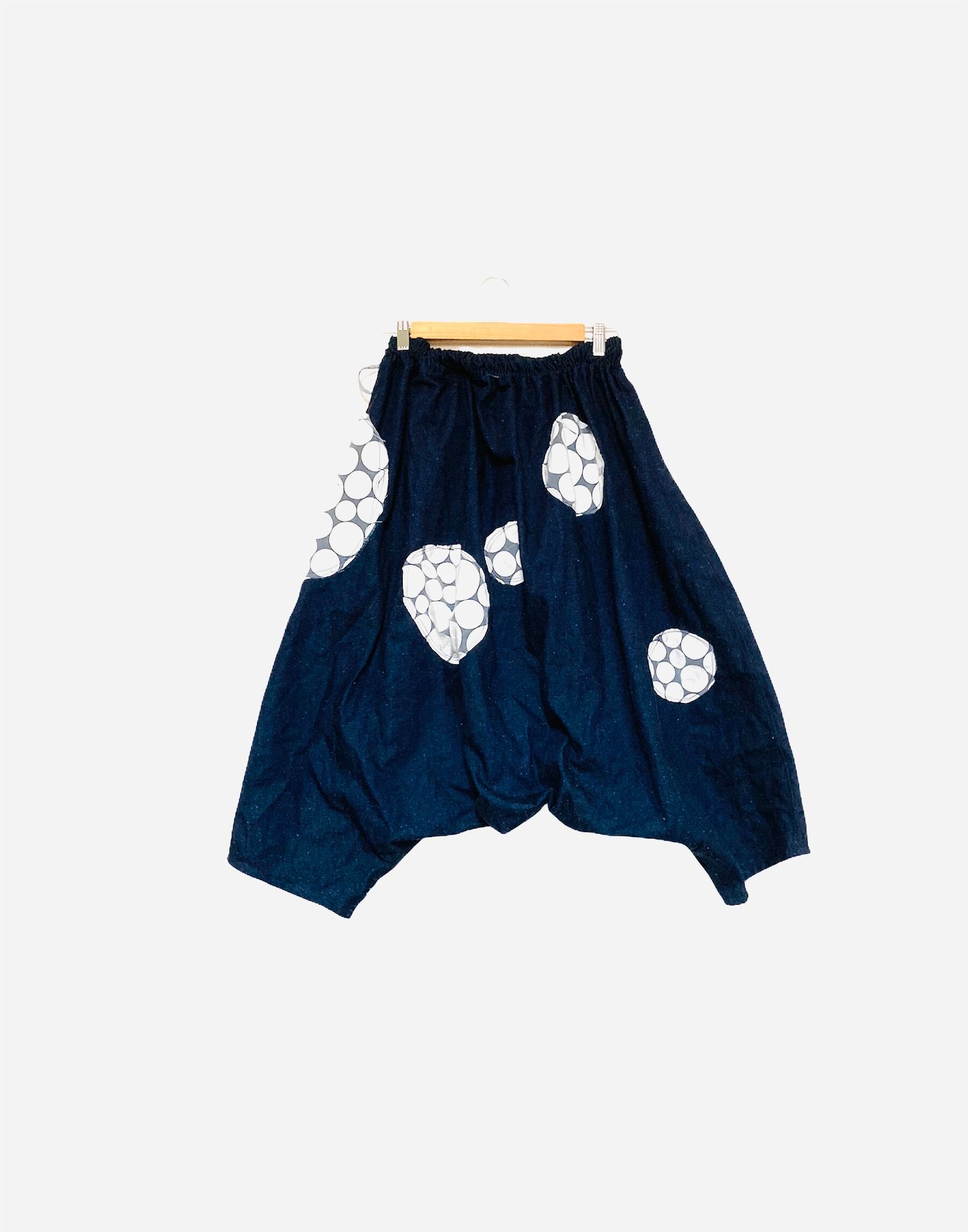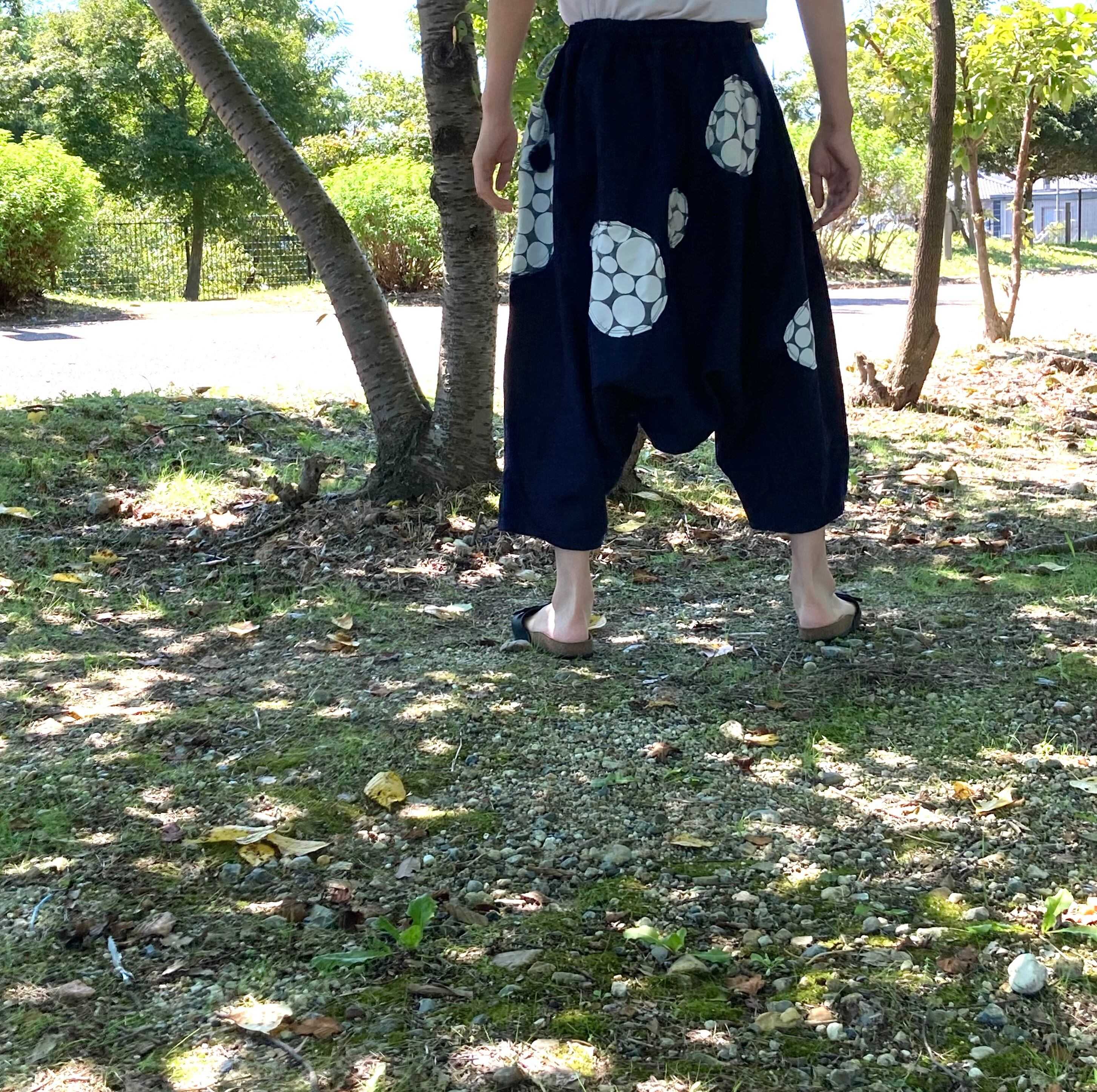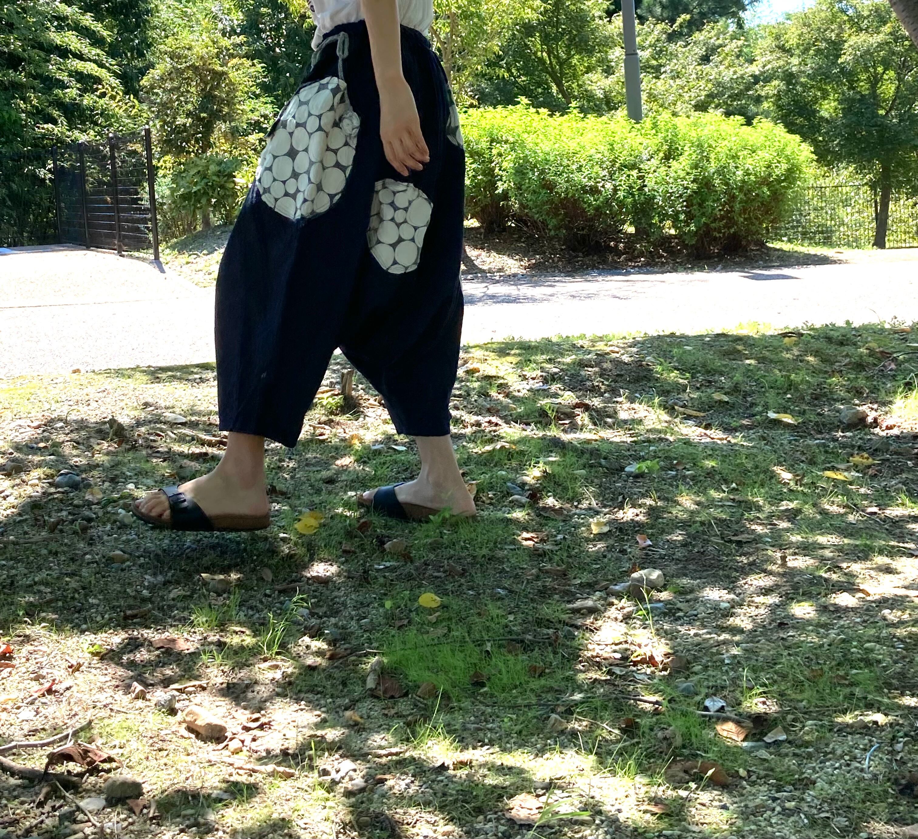 ウエストは総ゴムで、紐でサイズ調節していただけます。