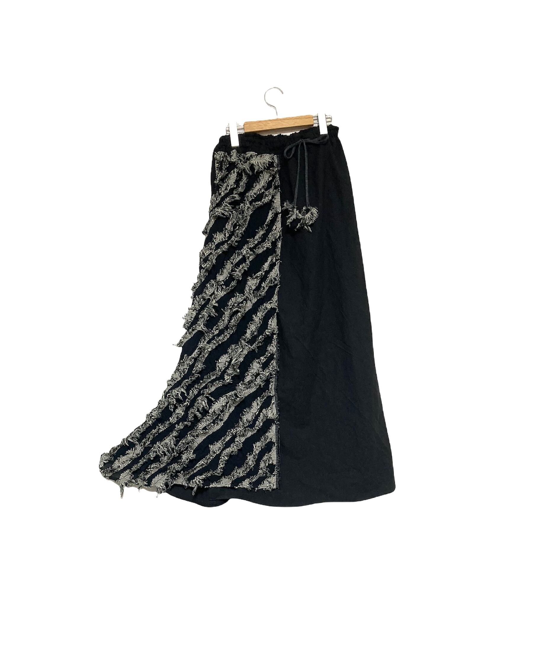 こちらは、播州(兵庫)産生地と尾州産(岐阜)の個性ある生地を合わせて仕上げたスカートです。
