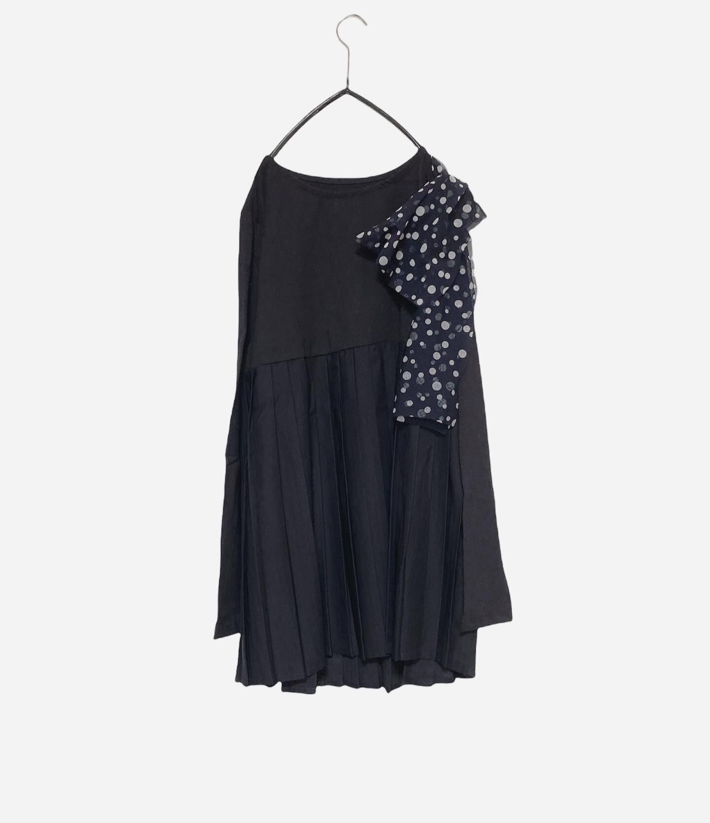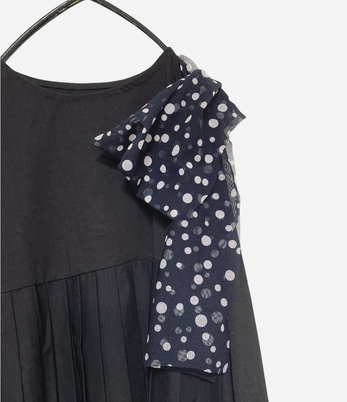 バスト下の体のラインが綺麗に見える位置でプリーツの切替を入れる事で腹部の体型もカバーしてラインをスッキリ見せてくれます。丈も長めでニットと合わせて裾からレイヤードとして見せれる長さで設定しました! 全体のシルエットも体にフィットしすぎないサイズ感になっています。