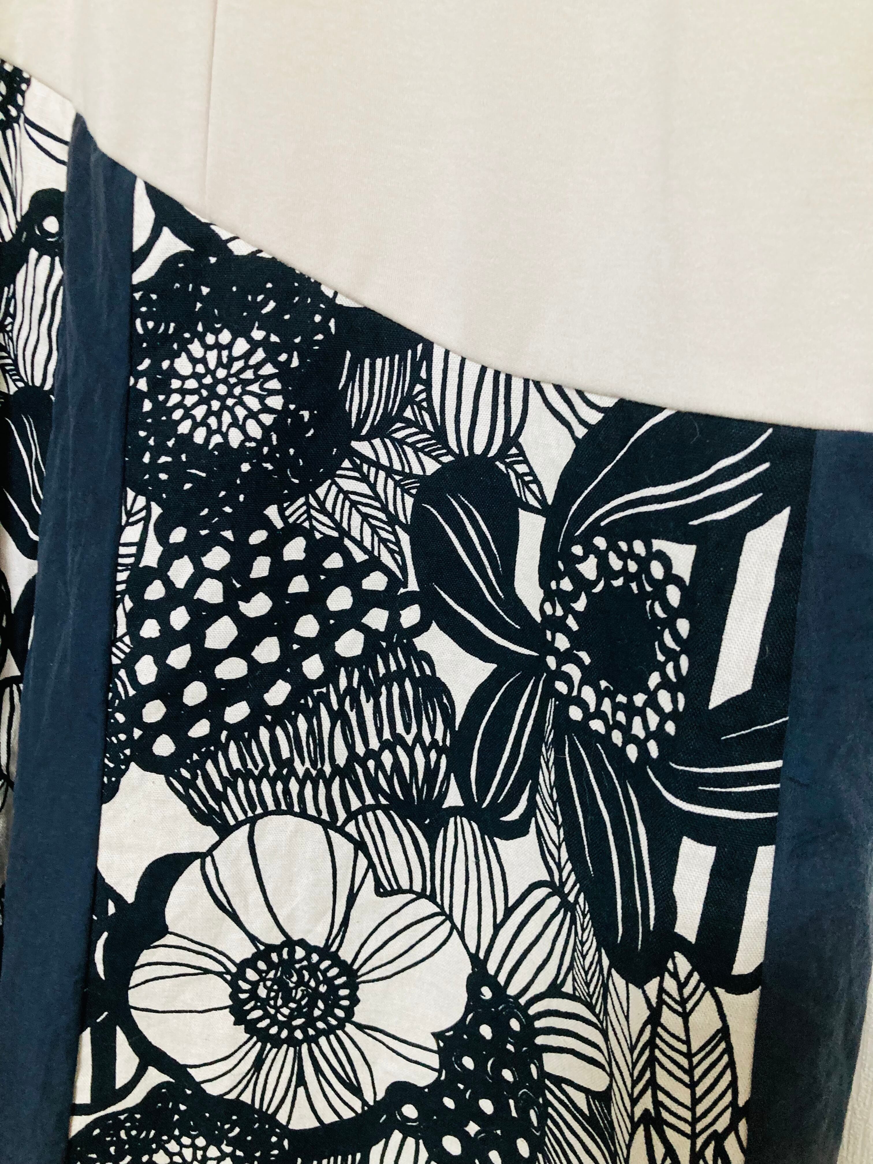 切り替え部が斜めなので、お腹がスッキリして見えて、着痩せ効果があります。