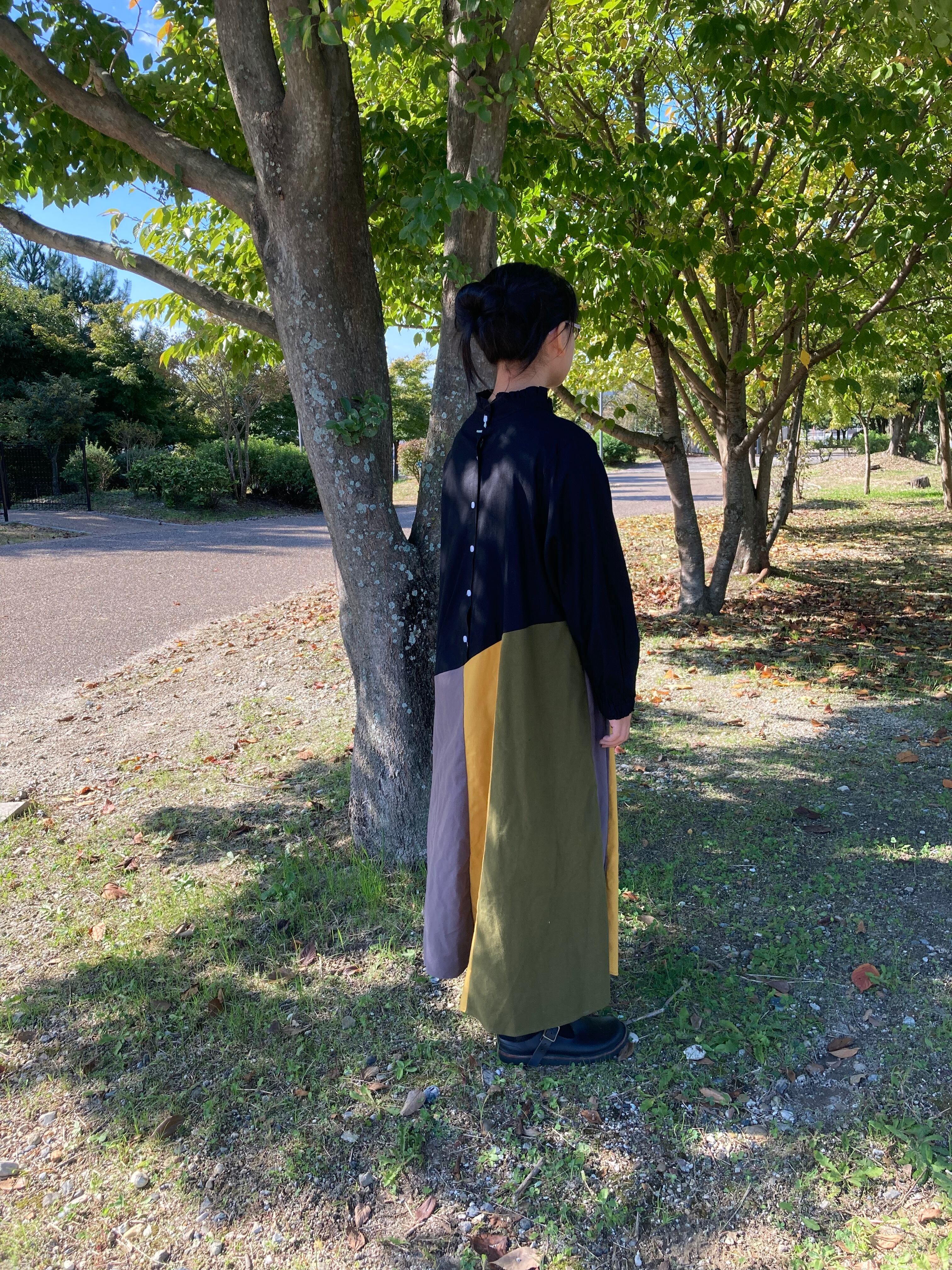 切り替え部が斜めなので、お腹がスッキリして見えて、着痩せ効果があります。