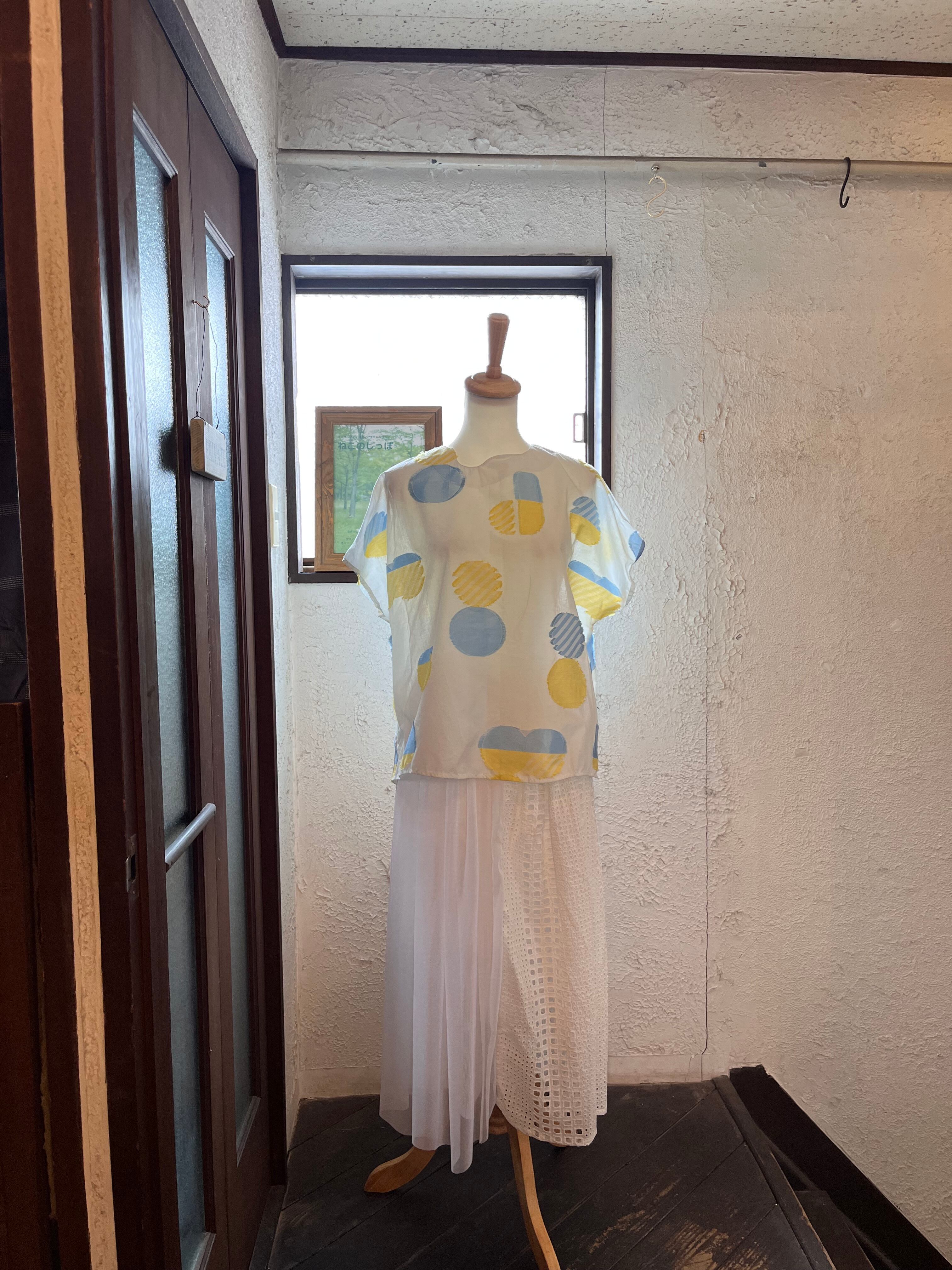 「オンリーワン 播州織トップス ブルー」は、日本の伝統技法である播州織を使用したトップスです。香淳皇后が気に入っていたといわれる伝統的な織物技術で織られた、ふっくらとした生地を使用しています。ブルーの色彩が清々しく、爽やかな印象を与える一枚となっています。