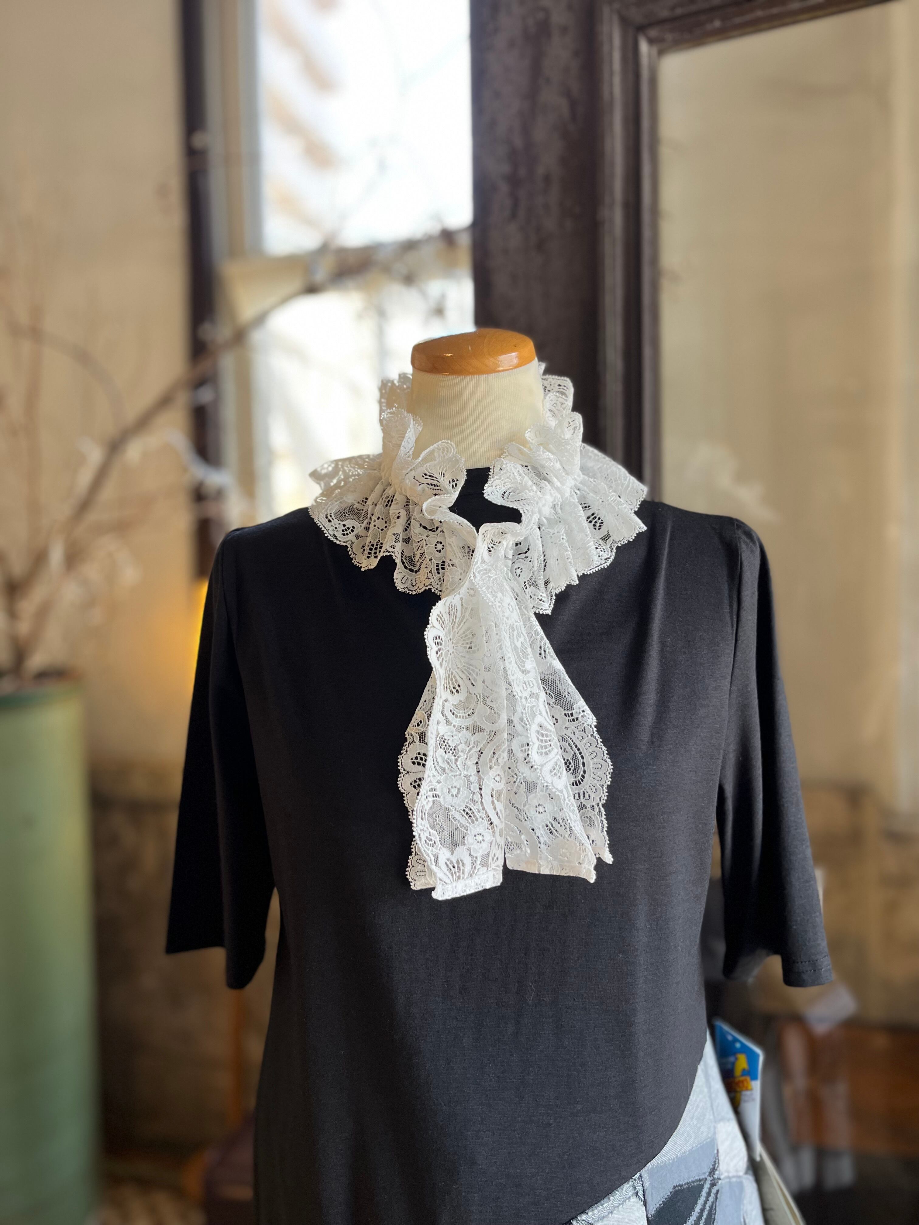 ユニークなデザインのレース付き襟。おしゃれなアクセントとして活躍!