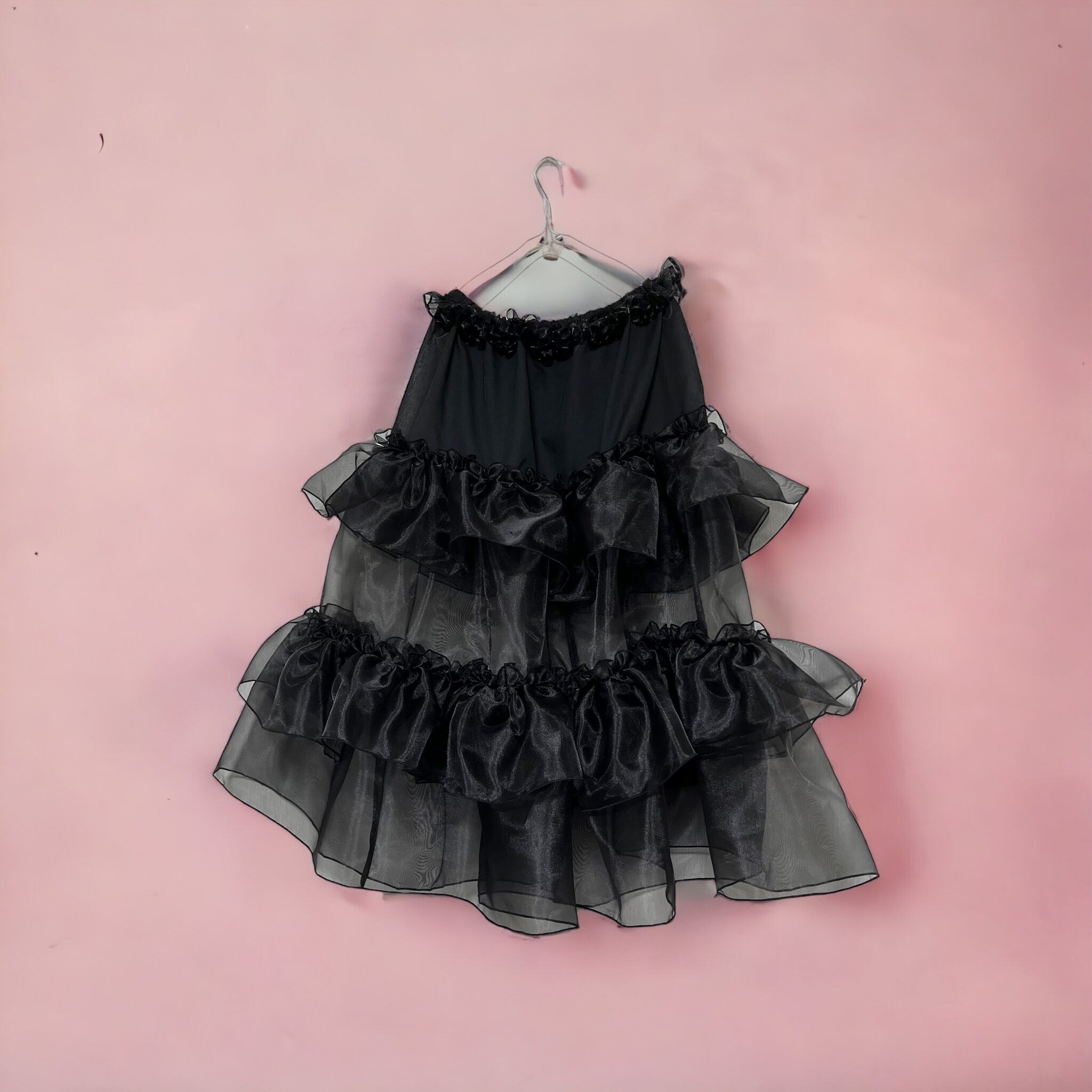 甘いロマンチックな雰囲気漂うオンリーワンのオーバー、アンダースカート。美しいレースワークと透け感が魅力の一枚です。トップスとのコーディネートもしやすく、様々なスタイリングに対応します。独自のデザインで、どの角度から見ても美しい。身につけると、まるで夢の中にいるかのような幸せな気持ちになることでしょう。