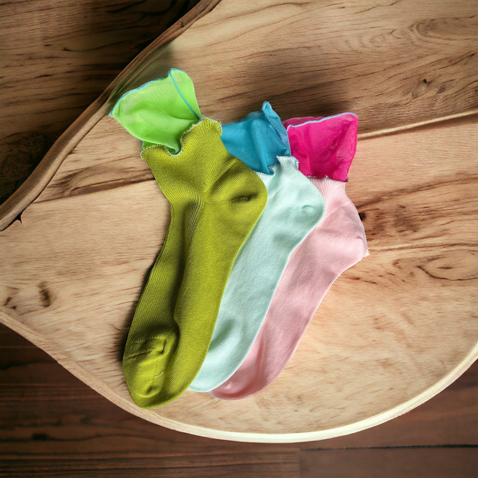 「オンリーワン靴下 ネオンシアー」は、奈良県産の新品素材にシアーを施した唯一無二の靴下です。透けるようなシアーが足元に華やかさをプラスし、コーディネートをおしゃれに仕上げます。日常の装いにちょっとしたアクセントをプラスしたい方におすすめの逸品です。