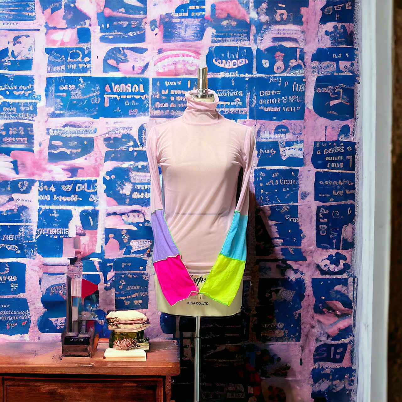 オンリーワンシアートップス ピンクは、フェミニンなピンクカラーが魅力のトップスです。ネオングリーンのメロウがアクセントになり、存在感のある一枚。しっとりとした肌ざわりで、着心地も抜群。伸縮性にも優れており、様々な体型にフィットします。