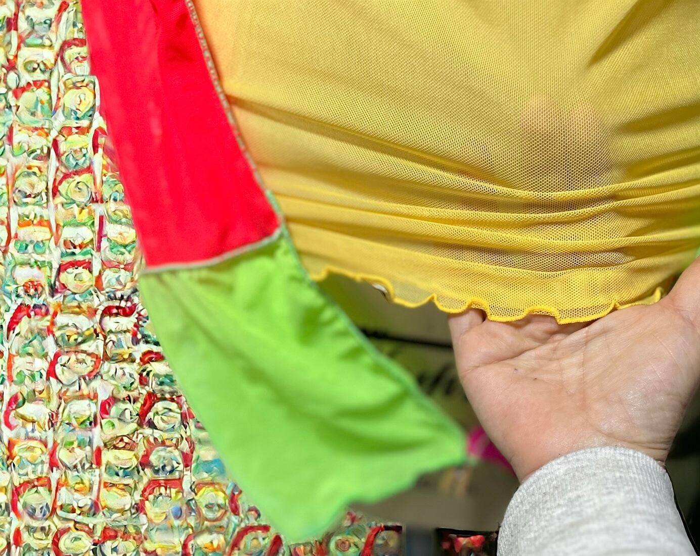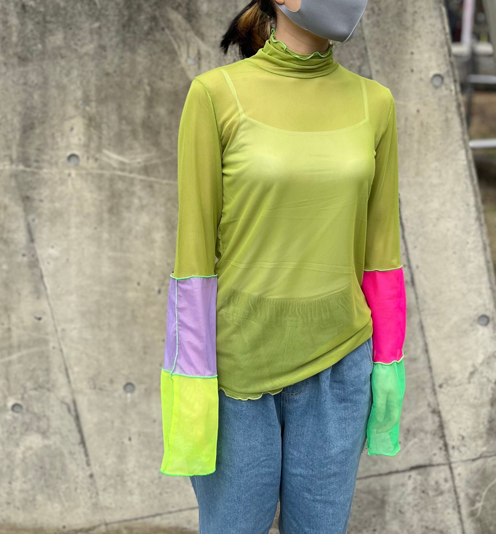 オンリーワンシアートップスは、フェミニンなカラーが魅力のトップスです。ネオングリーンのメロウがアクセントになり、存在感のある一枚。しっとりとした肌ざわりで、着心地も抜群。伸縮性にも優れており、様々な体型にフィットします。