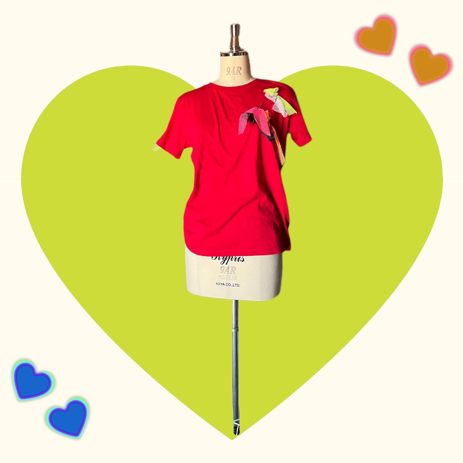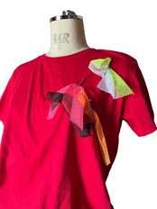 カラフルなチュールやメッシュ生地をあしらった、唯一無二のオンリーワンtシャツ。華やかなデザインが目を引く一枚は、どんなコーディネートにもアクセントを与えます。着るだけで楽しい気分になれる、個性的なアイテムです。