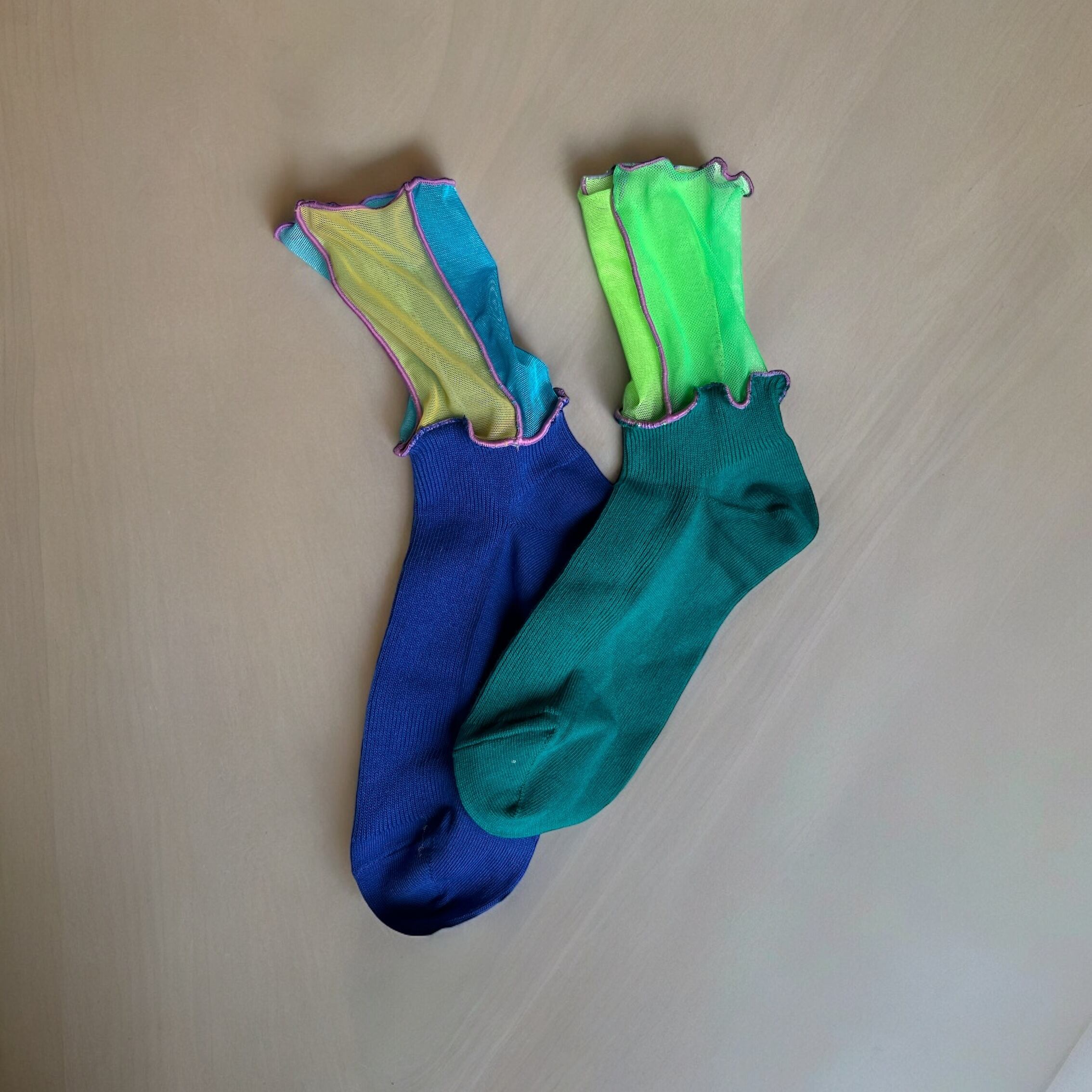 素材には奈良県産の新品を使用しており、肌触りが柔らかく履き心地の良い靴下に仕上がっています。足元から気分をアップさせるようなカラーが、あなたのスタイリングを一層魅力的に演出します。オンリーワンのデザインで、他とは一線を画すおしゃれを楽しんでみてはいかがでしょうか。