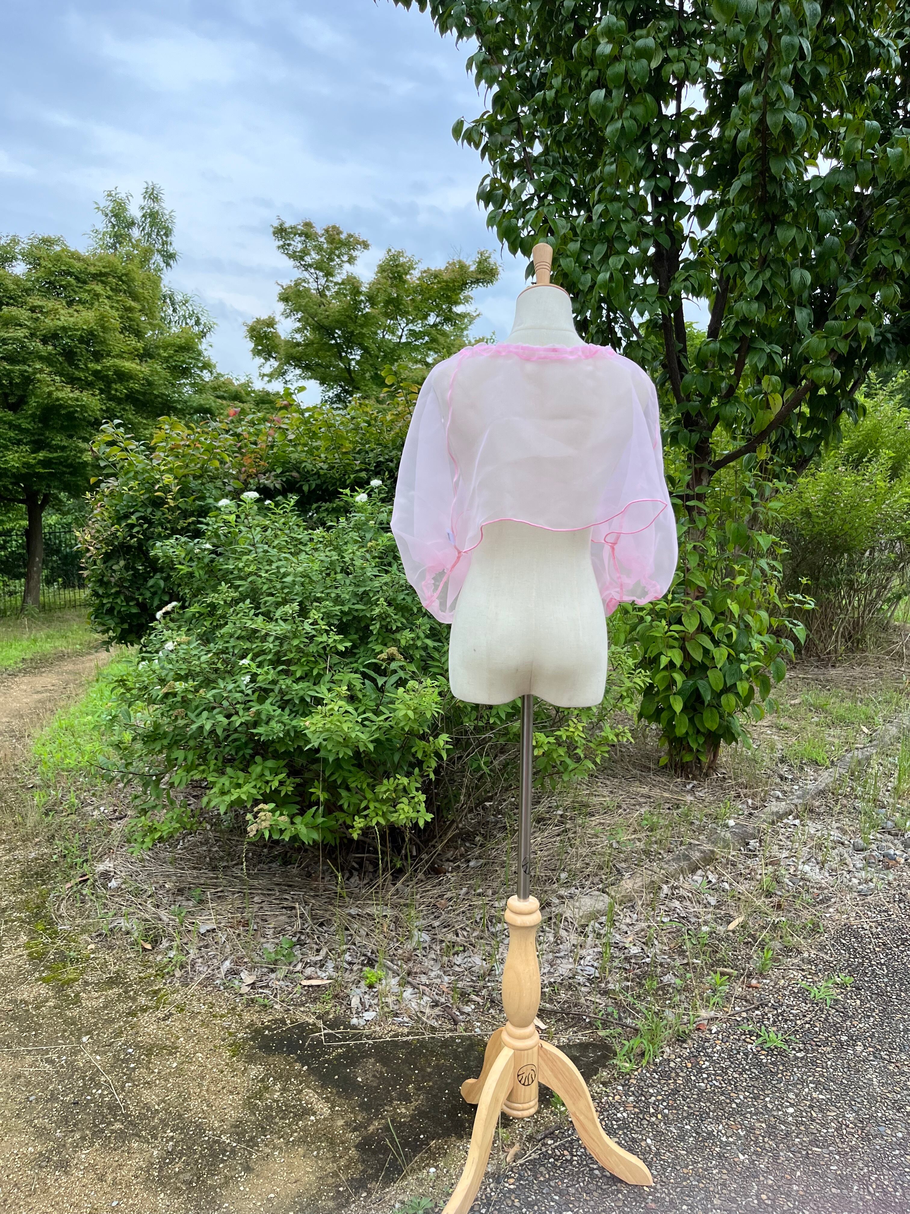 オンリーワンシアーかーで ピンクは、軽やかに透ける生地が魅力的なトップスです。リボンと後ろのデザインがポイントで、どこかユニークさを感じさせてくれる一点もののアイテムです。フリーサイズなので、誰でも着こなせるのも嬉しいところ。