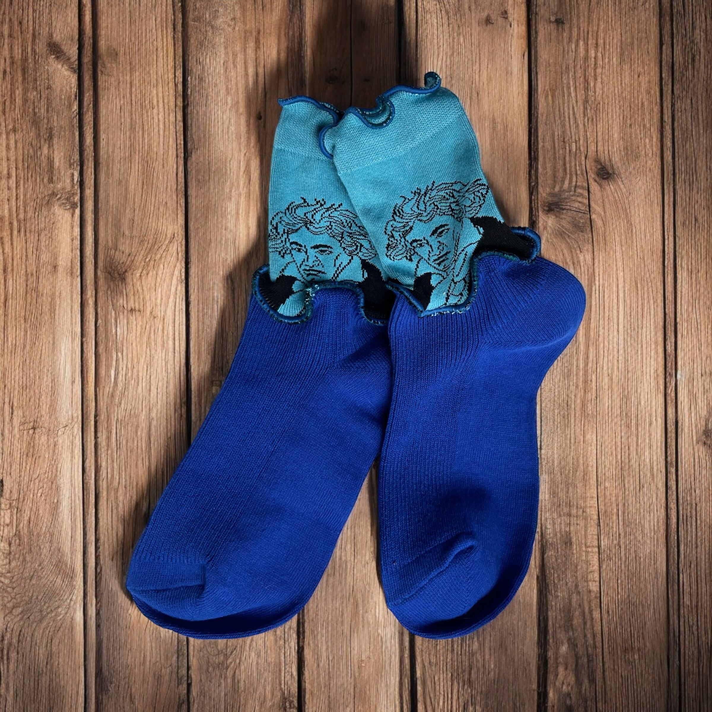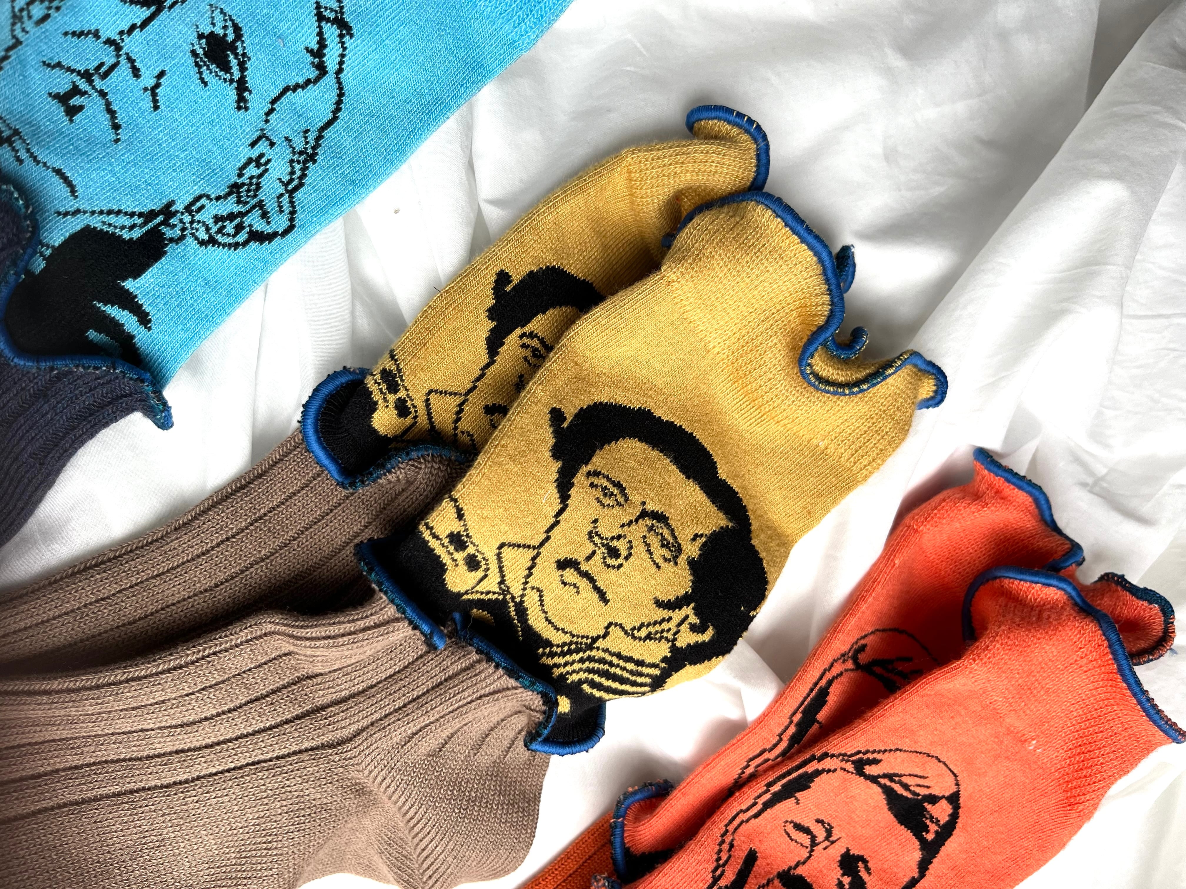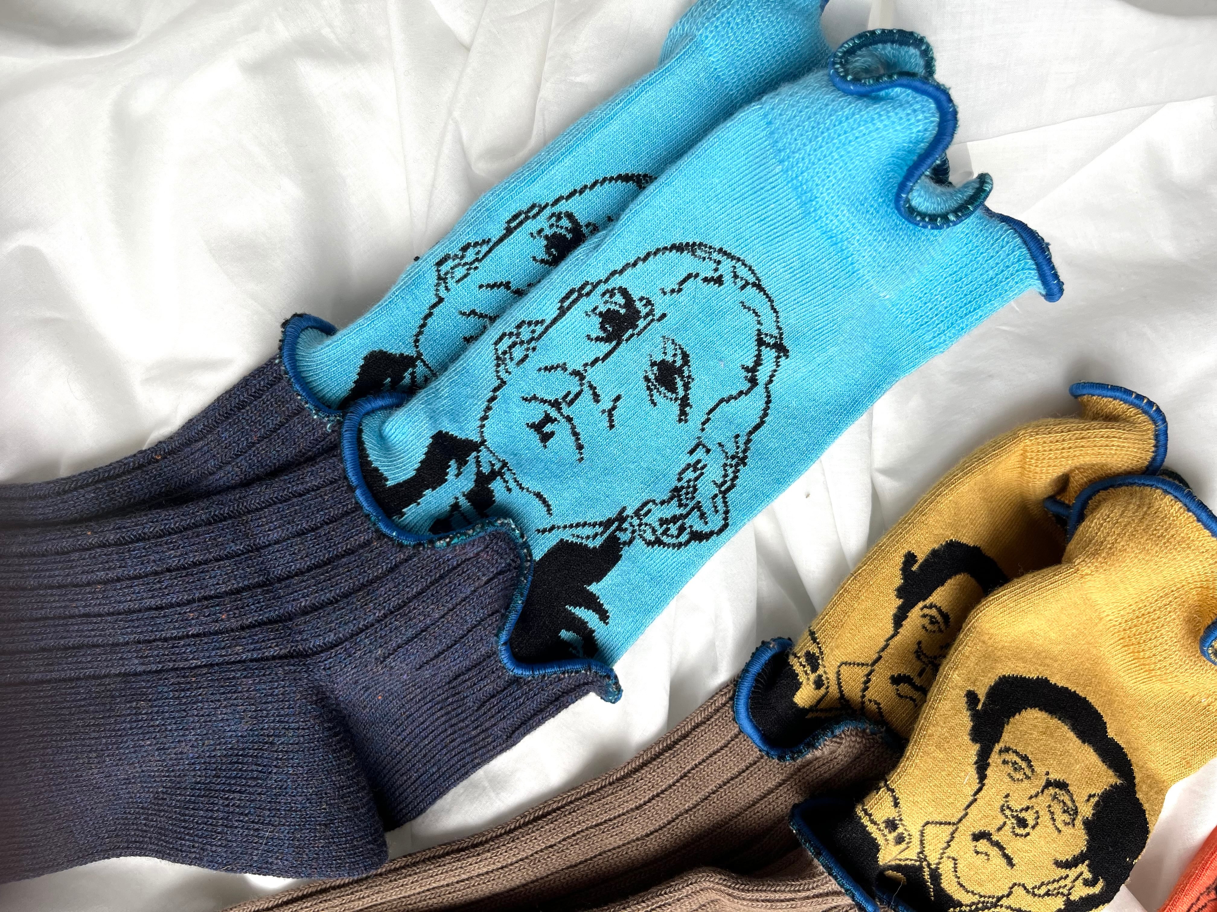 ご来店ありがとうございます!オンリーワンなアートな靴下、25〜27cmサイズをご用意しました。奈良県で生産された、手描きのようなデザインが特徴です。足元からおしゃれを楽しみたい方にぴったりの逸品です。柔らかい素材で履き心地も抜群ですよ。