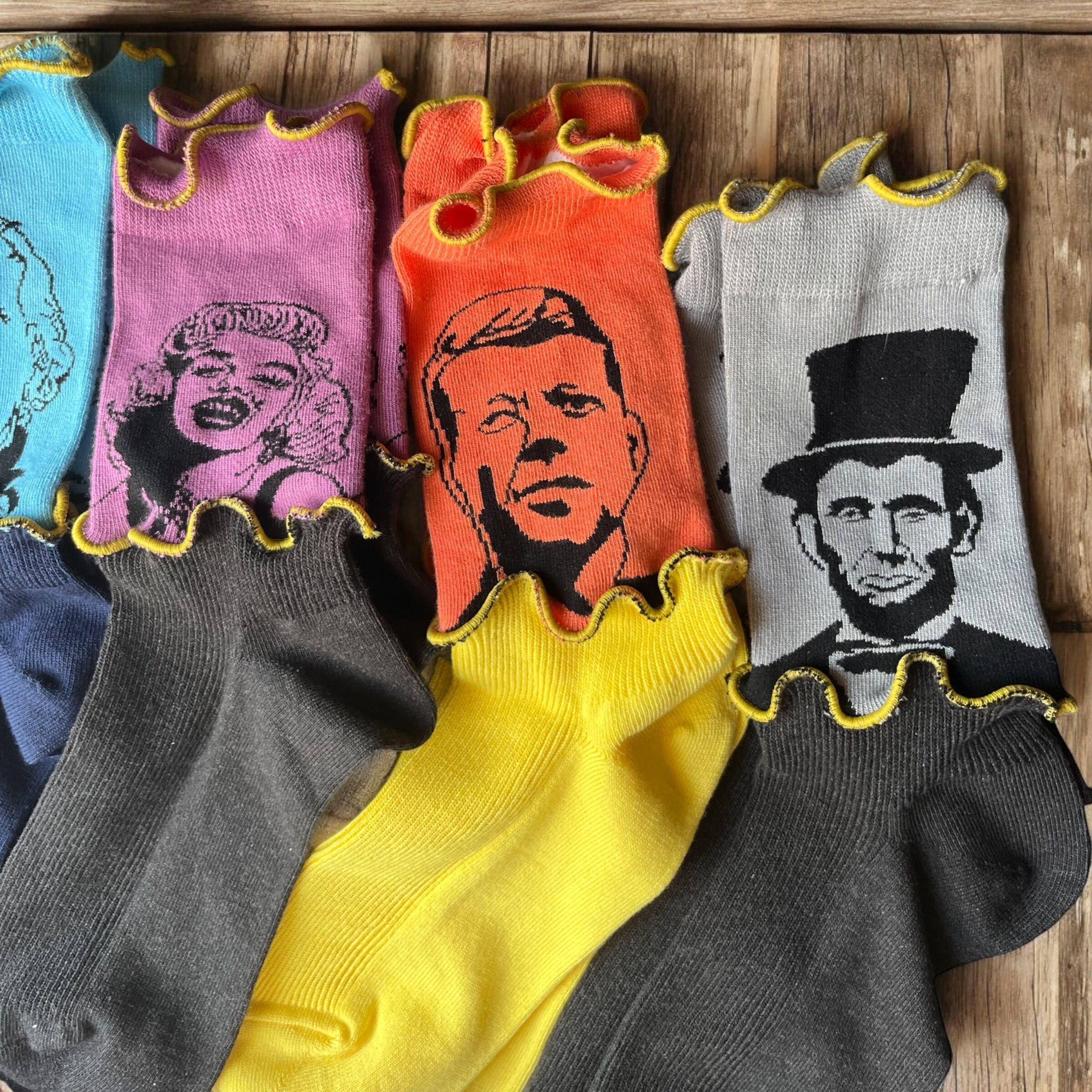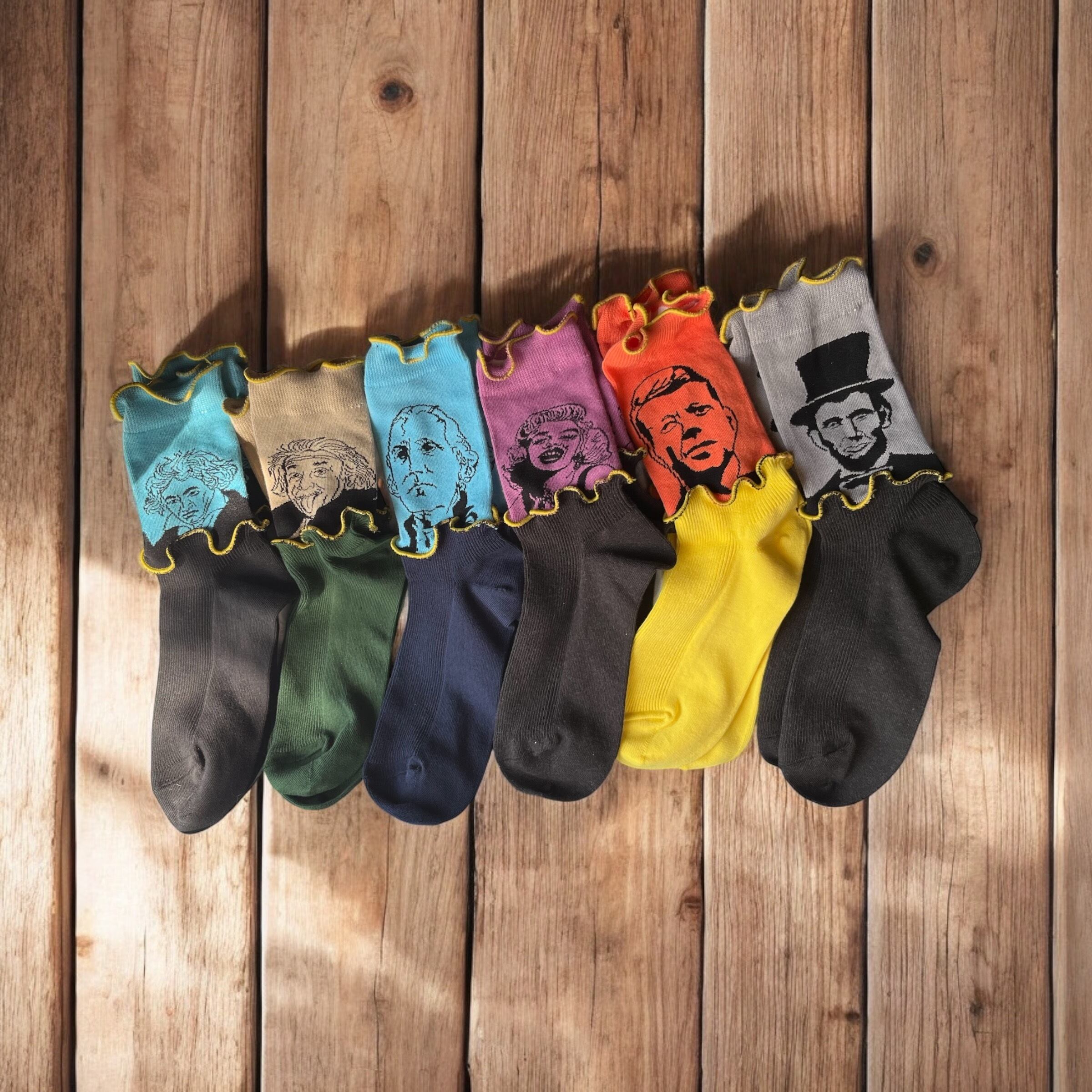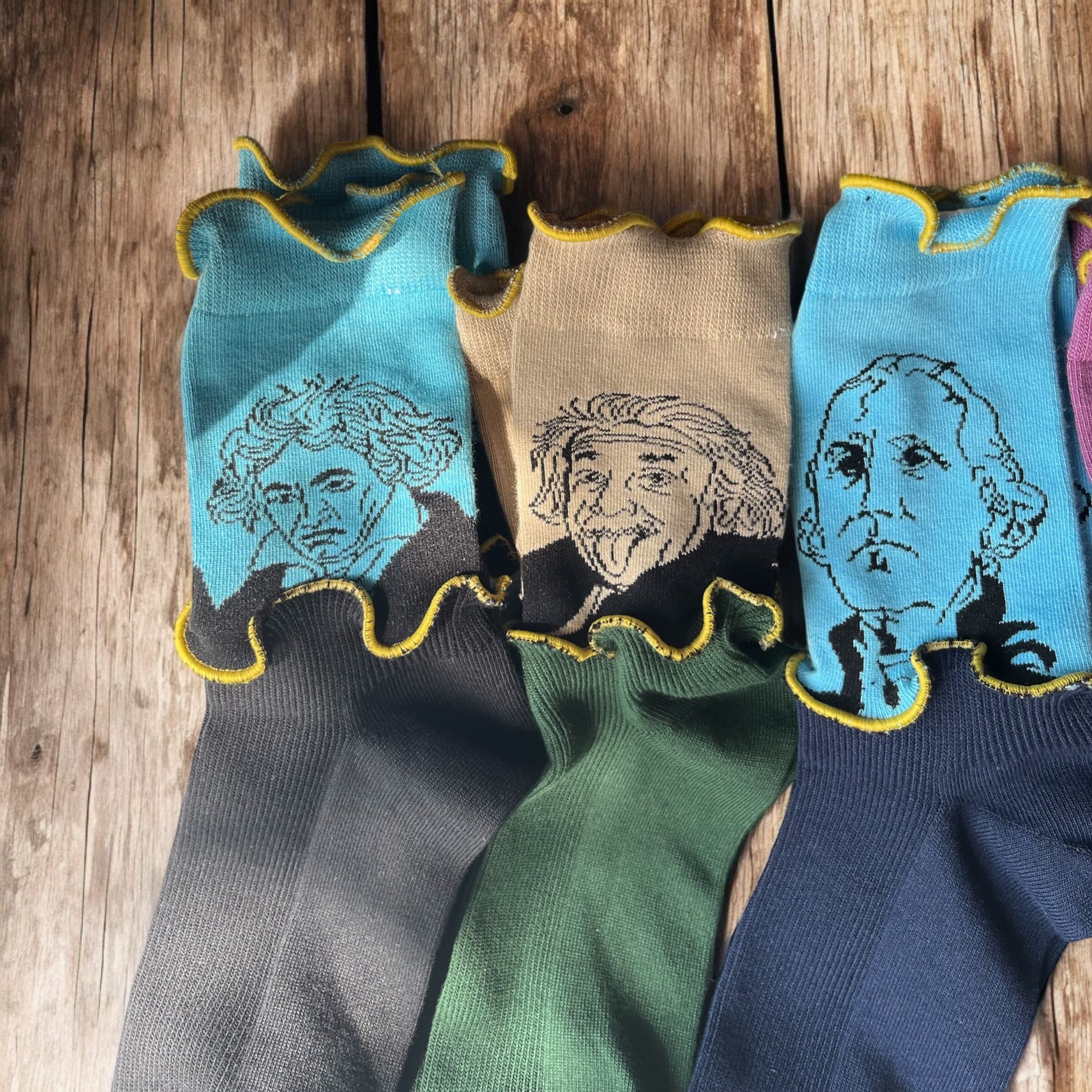ご来店ありがとうございます!オンリーワンなアートな靴下、22〜25cmサイズをご用意しました。奈良県で生産された、手描きのようなデザインが特徴です。足元からおしゃれを楽しみたい方にぴったりの逸品です。柔らかい素材で履き心地も抜群ですよ。