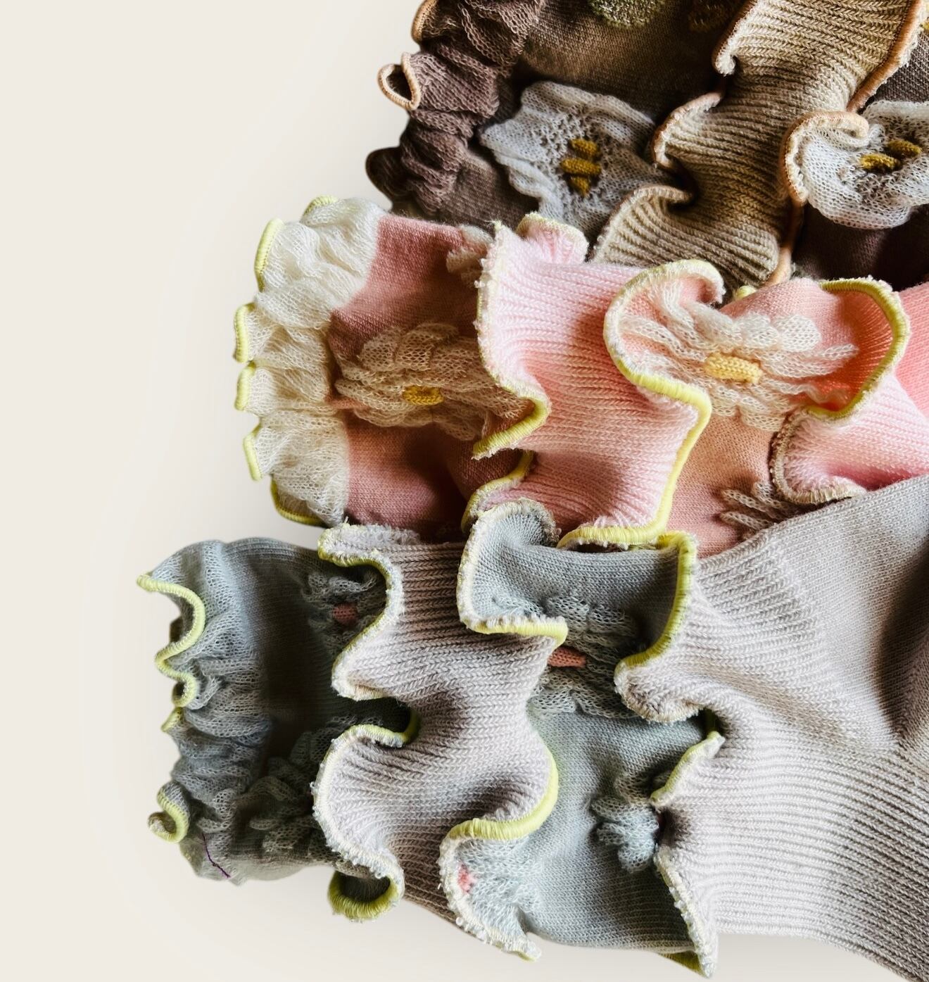 ご来店ありがとうございます!オンリーワンなアートな靴下、22〜25cmサイズをご用意しました。奈良県で生産されたつぎばぎにしあげたデザインが特徴です。足元からおしゃれを楽しみたい方にぴったりの逸品です。柔らかい素材で履き心地も抜群ですよ。